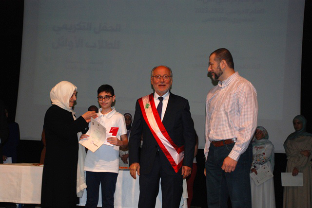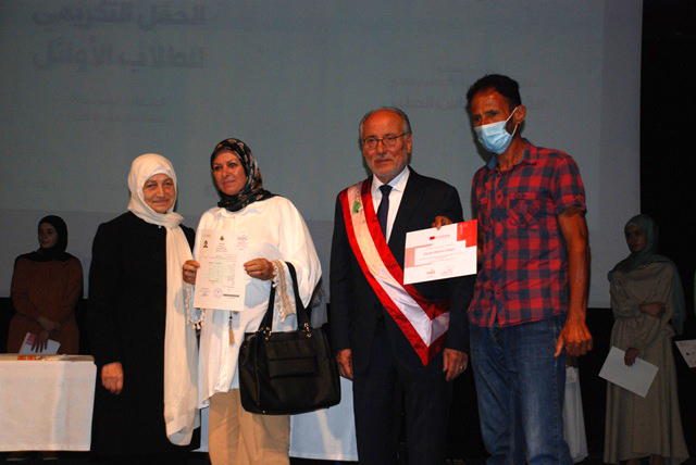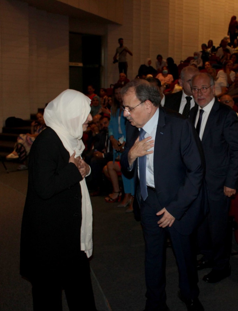 ثم قلدت السيدة الحريري الوزير الحلبي وشاح العلم اللبناني لمناسبة الذكرى الثانية بعد المائة لمئوية لبنان الكبير والتي تصادف في الأول من أيلول ، وقام بمشاركتها بتسليم الشهادات التكريمية للطلاب المحتفى بهم مع شعار المئوية وشهادة النجاح الرسمية الصادرة عن الوزارة لكل طالب .