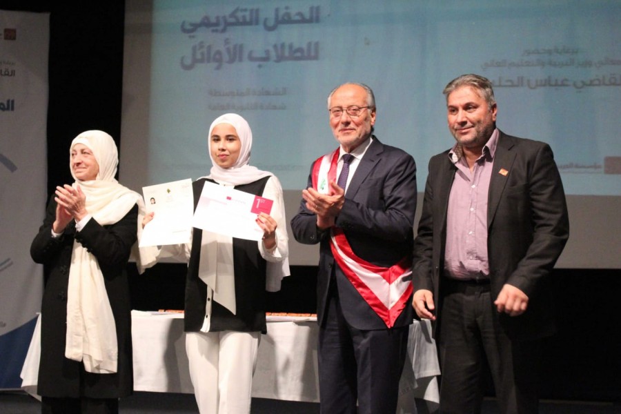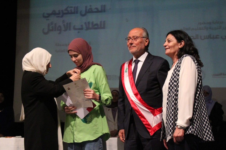 برعاية وحضور وزير التربية والتعليم العالي القاضي عباس الحلبي كرمت مؤسسة الحريري للتنمية البشرية المستدامة ممثلة برئيستها السيدة بهية الحريري الطلاب الأوائل على صعيد محافظتي الجنوب والنبطية في الشهادتين المتوسطة والثانوية العامة الرسمية بمختلف فروعها وذلك في احتفال أقيم في قاعة مسرح ثانوية رفيق الحريري في صيدا بمشاركة مدراء مدارس وأهالي الطلاب المكرمين وحضور فريق العمل الوزارة والمؤسسة.