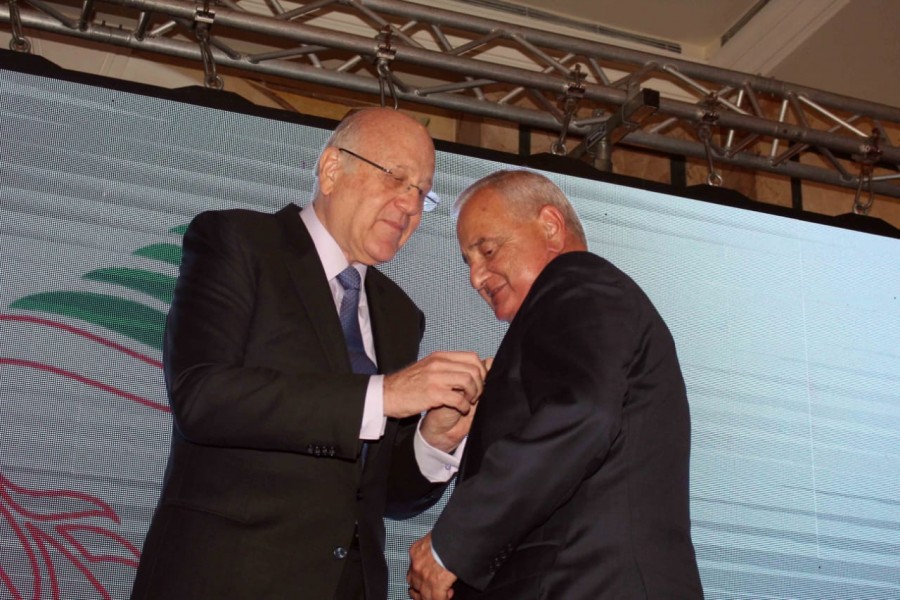 وفي الختام قلد الرئيس ميقاتي الأخوين مازن ومروان صالحة الوسام التكريمي ، وقدمت السيدة بهية الحريري لهما ولكل من الرئيس ميقاتي والوزير الحلبي درع طائر الفينيق التكريمي باسم مؤسسة الحريري والمبادرة الوطنية لمشوية لبنان الكبير.