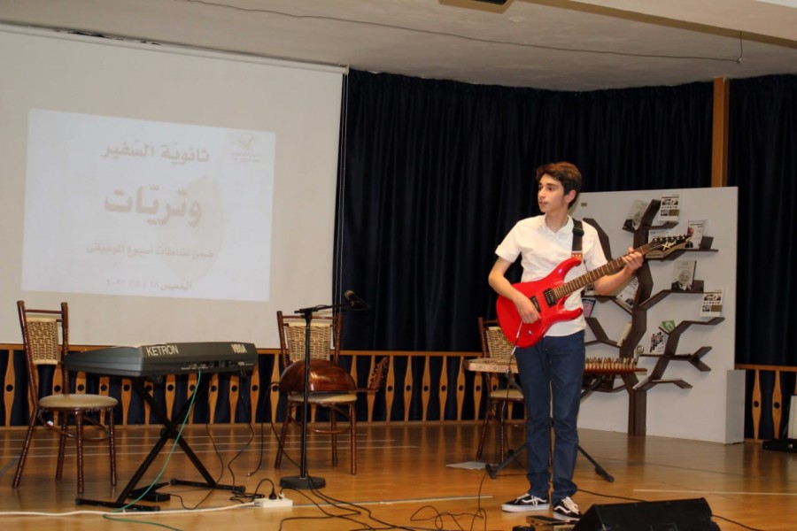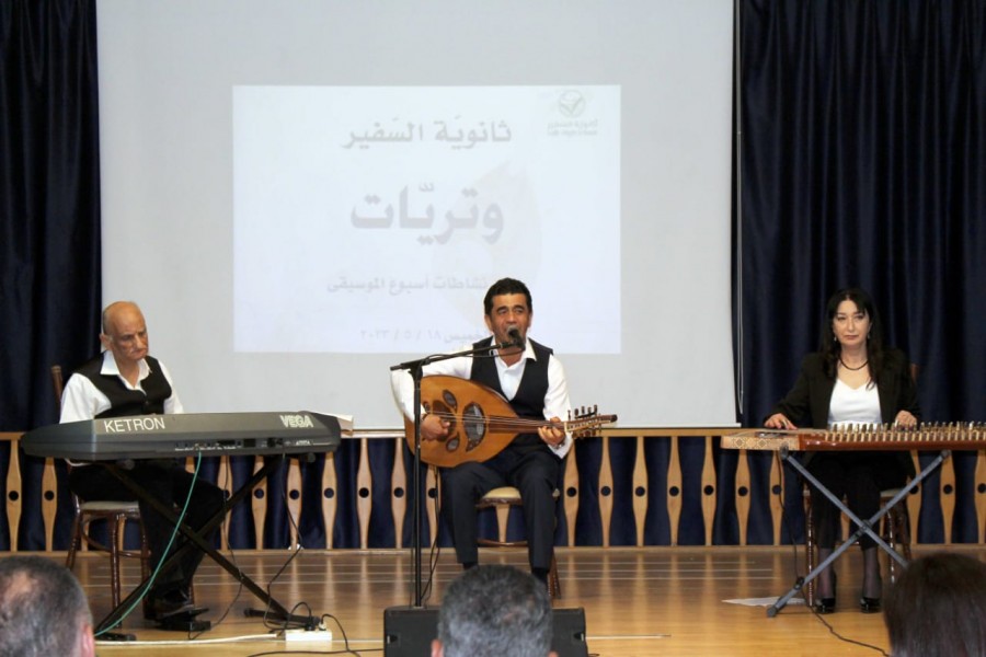 لأن الموسيقى الراقية غذاء الروح تنفذ إليها سمعًا وإطرابًا يلامس القلب ويأسر الوجدان ويحلّق بالنفس إلى فضاءات من الفرح ، وضمن أنشطة "أسبوع الموسيقى" ، أقامت " ثانوية السفير – الغازية" حفلاً موسيقًّا بعنوان "وتريّات " أحياه الفنّان والمايسترو محمّد دياب وعازف العود ميلاد عمّوري وأستاذة العلوم الموسيقيّة وعازفة القانون ريما زرزور وعازف الغيتار شادي دياب، وذلك في قاعة الاحتفالات في المدرسة بحضور جمع كبير من أفراد الهيئتين التعليمية والإدارية ومن الطلاب.