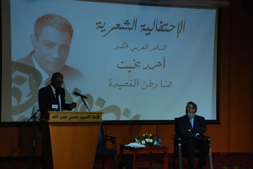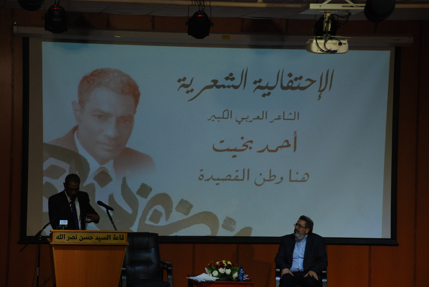 بمشاركة نخبة من الشعراء والأدباء والمثقفين والعلماء وفعاليات سياسية واجتماعية وتربوية ورؤساء بلديات ومخاتير وممثلين عن الأحزب والجمعيات والأندية والمنظمات الشبابية والطالبية اللبنانية والفلسطينية غصت بهم قاعة السيد حسن نصر الله في مجمع السيدة الزهراء عليها السلام في صيدا ، نظم حزب الله أمسية شعرية استضاف فيها الشاعر العربي الكبير أحمد بخيت من جمهورية مصر العربية والذي ألهب حماس الجمهور الكبير بباقة من قصائده التي تناولت موضوعات عن فلسطين والأمة العربية والنبي محمد (ص) والإمام الحسين (ع) على مدى ساعة ونصف، وقد تفاعل معها الجمهور بالتصفيق تارة والوقوف تارة أخرى وحملته إلى فضاء الدهشة والإبداع والجمال.