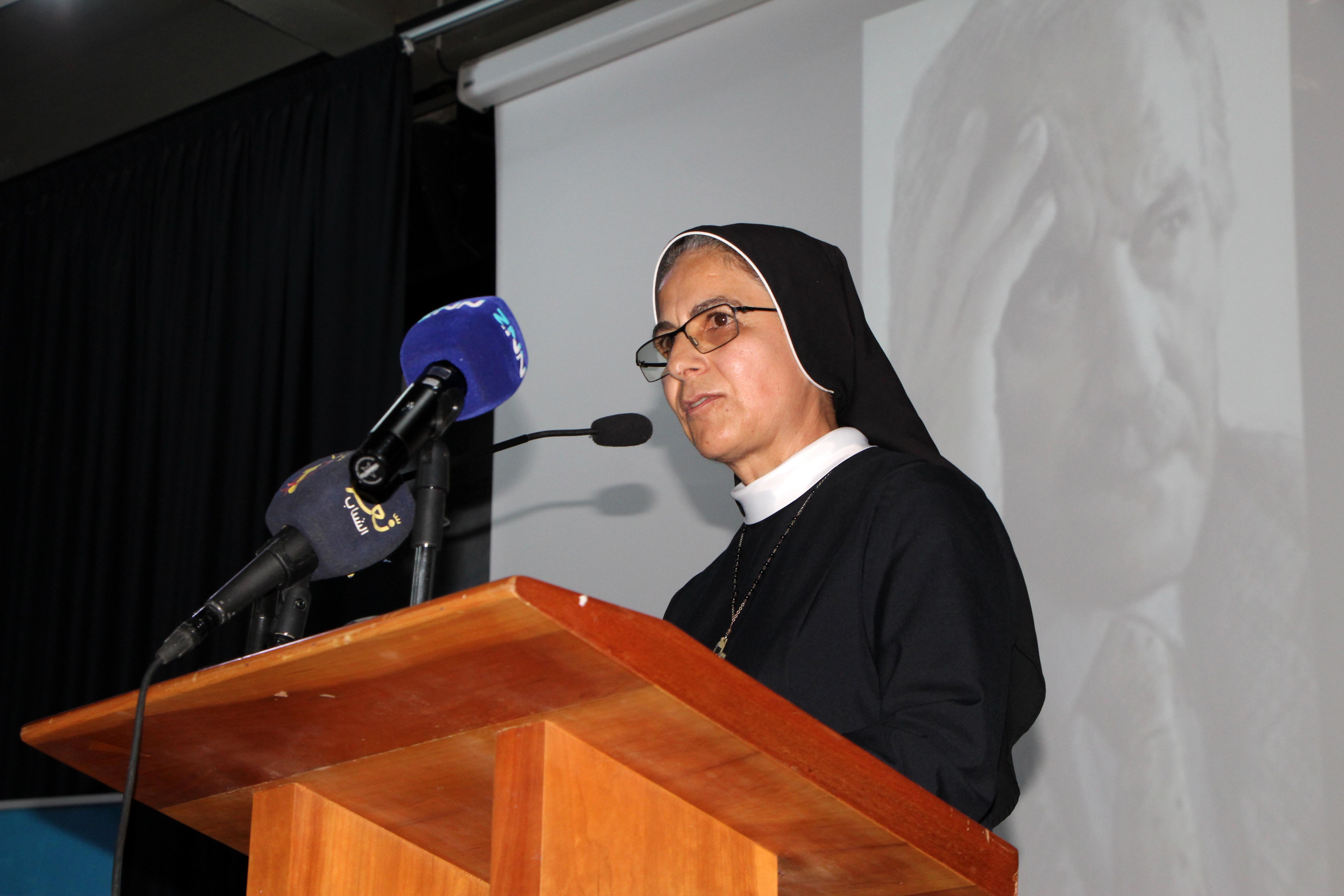 ثم تحدثت رئيسة المدرسة الأخت جنفياف طيار فاعتبرت أن العناية الإلهية ، شاءت أن يكون تكريم الشاعر جوزف حرب في هذا الصرح التربوي في بلدة المعمرية حيث نهل أحفاده العلم واختزنوا من معينه الثقافة، وها هو اليوم يستضيف إحياء ذكرى الشاعر الراحل جوزف حرب وتكريم من " جسد مثال الإنسان المحب المتعلق بقضايا الإنسانية والوطن " وبجمال الفن والإبداع . وقالت:" نعم فهذا ليس حدثاً عادياً بل هو استثنائي بكل المعايير . نعم استثنائي في عصر التكنولوجيا والذكاء الاصطناعي والكتابة الرقمية ، اذ نجتمع لنحتفل بتوقيع كتاب ورقي"، مهنئةً الأب الدكتور ميخائيل قنبر على اصدار كتاب تكريمي للشاعر الراحل".