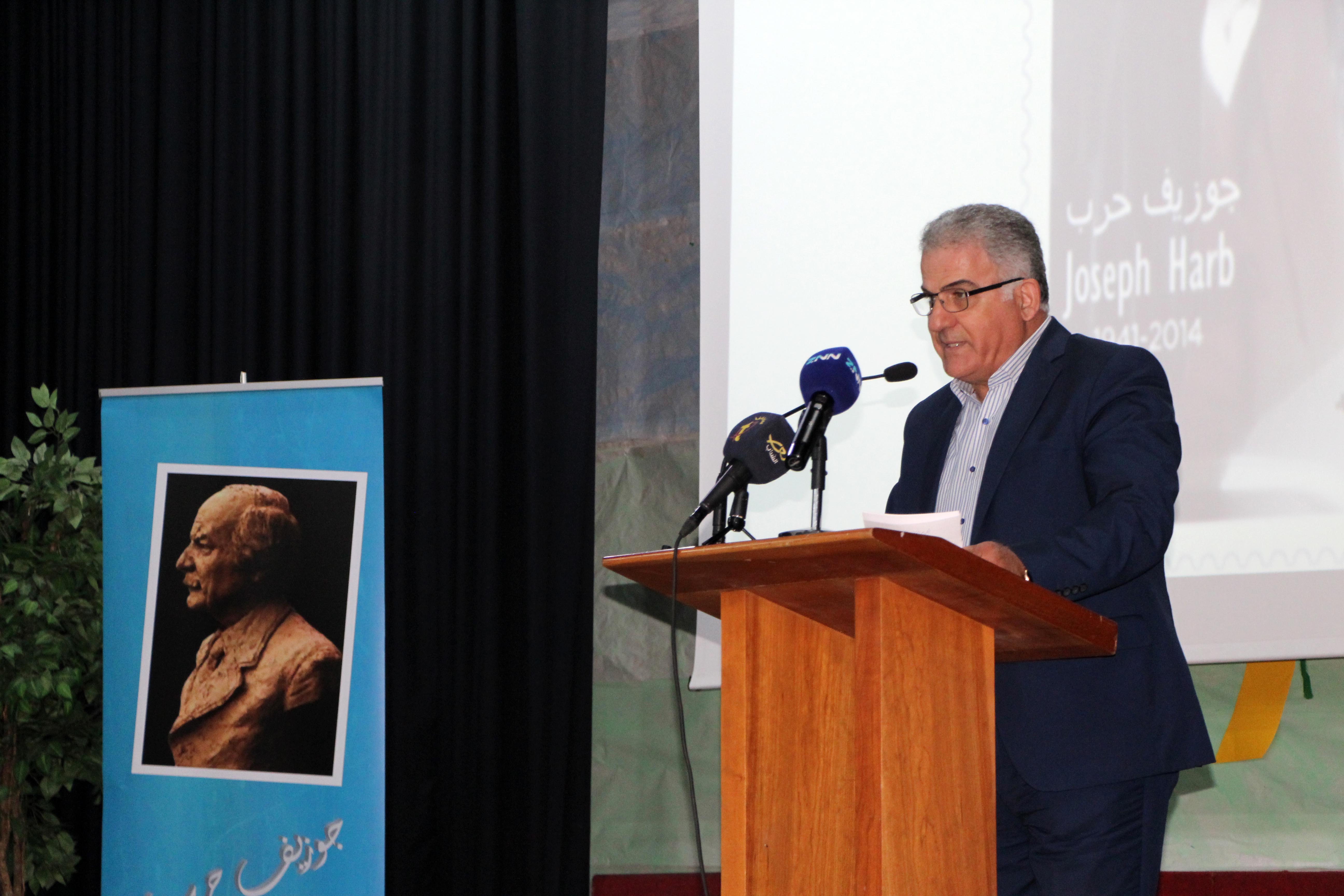 وتحدث رئيس الحركة الثقافية في لبنان الشاعر الأستاذ باسم عباس فاعتبر أن " جوزف حرب صاحب القامة الوطنية أبى أن يمضي قبل أن يبلسم الجراح المزمنة ، و" قبل أن تنزل الشمس لتستحم في الخردلي والوزاني والدردارة ، وقبل أن تغني الطيور في فضاء الجنوب أجمل أغنيات الحرية " وقال : " قيثارة تجربتك النضالية العريقة ولّدت صوتاً يستحيل فناؤه ، جعلت روح الزمن ترن فرحة رغم الوجع الكبير .. بمواقفك المشرفة غزلنا للتراب أجمل قصيدة في هذا العصر ، هي التحرير.. نراك في عيون الأقلام وفي أرواح الدفاتر والكتب علامة استفهام عن مصير هذا الوطن ، وعلامة تعجّب من واقع هذه الأمة وفاصلة بين جملتين حائرتين ، ونرفض نرفض أن نراك نقطة في آخر السطر .. لكأن الأزهار والسواقي والعصافير لم تكن لتكفي لصناعة الربيع ، فراح جوزف حرب يضيف اليها أزاهير روحه ، وباقات فرحه ، ومشاتل حنانه ليكتمل ربيعان : ربيع الطبيعة وربيع العمر الإبداعي الجميل .. لكم ناضلنا معاً لتحطيم الأعراف المذهبية والطائفية خصوصاً في المؤسسات الثقافية ، ولكم كنا شديدي الحرص على نشر وعي وطني يؤدي الى انصهار حقيقي بين أبناء الوطن الواحد مقدمة لإنصهار متين بين أبناء الأمة".