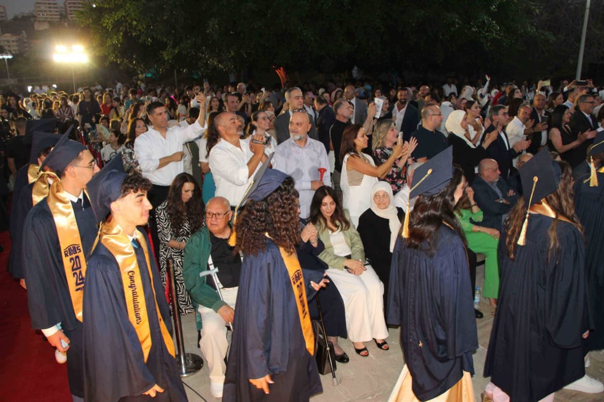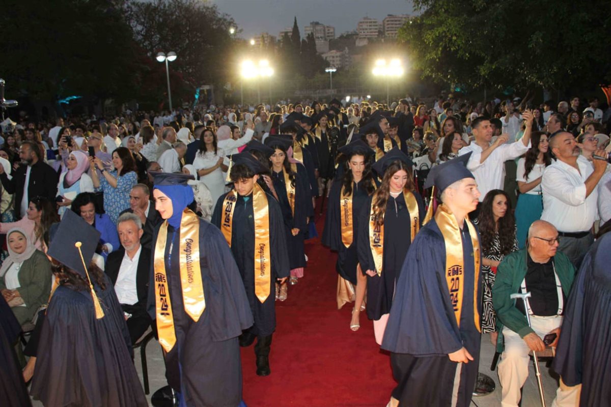 بعد دخول موكب الخريجين ، افتتح الحفل بالنشيد الوطني ونشيد ثانوية رفيق الحريري مع كورال من تلامذة المدرسة، ثم كانت كلمة ترحيب من عريفة الحفل الطالبة نورا زياد السمرة قالت فيها: "نجتمع اليوم للإحتفال بإنجازنا الكبير، بعد رحلتنا الطويلة التي أوصلتنا إلى هذه اللحظة. نحن طالبات وطلاب ثانوية رفيق الحريري، لم نكتسب علما" وحسب بل تعلمنا كيف نتغلب على تحديات اليوم ونتحضر لمواجهة أزمات الغد، إنها مدرسة الشهيد رفيق الحريري، نقف مثقلين بكل هذا القهر والدمار من حولنا، لكن مفعمين بالأمل والإصرار بأننا قادرين على تغيير الواقع".