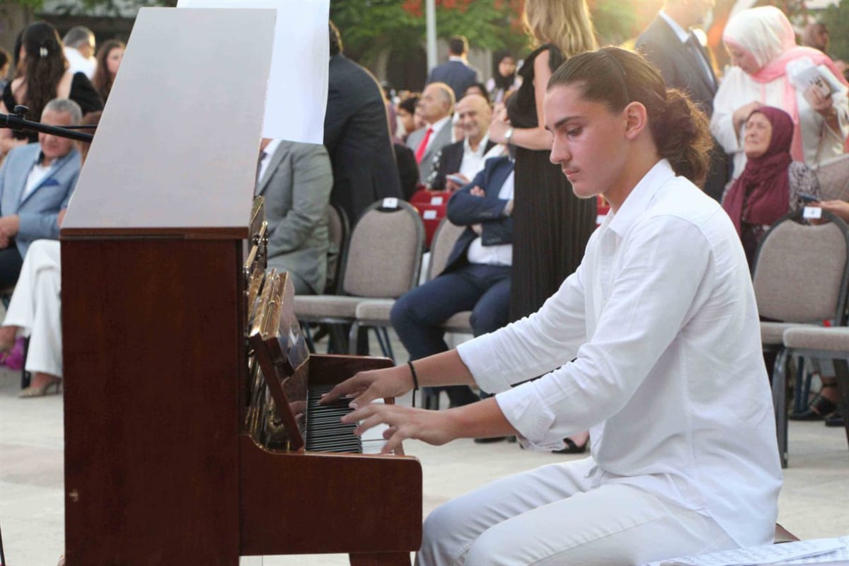 وكان في استقبالهم مديرة الثانوية نادين زيدان الحريري وافراد الهيئتين الإدارية والتعليمية، على وقع الموسيقى عزفاً على البيانو من الطالب جاد سامر عبد الغني .