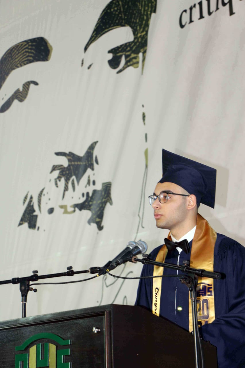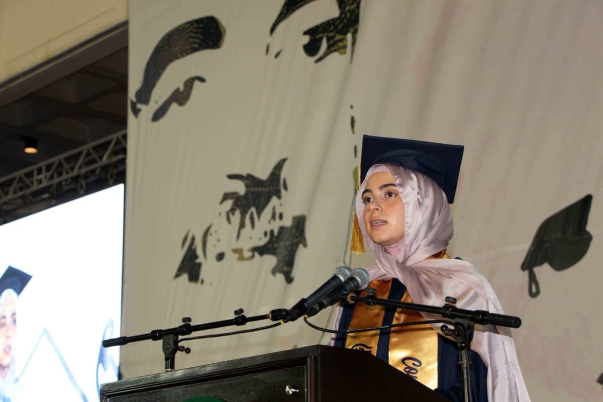 كلمة الدفعة الـ35 ألقتها الطالبة حلا وليد المحب، وقالت: "ها نحنُ نحتفلُ بثمارِ جهودِنا وتعبِنا. نودّع مدرستَنا العزيزة التي احتضنتنا طوالَ هذه السنوات، وننطلقُ نحو مرحلة جديدة، نحملُ فيها طموحاتِنا وأحلامَنا. سنسعى جاهدينَ لتحقيقِ أهدافِنا، ولن ننسى أبدًا الأسسَ المتينةَ التي تعلّمناها هنا، لكننا سنحمل دائمًا بالاضافة الى العلومِ والمعارفِ التي اكتسبناها، القيمَ الملهمة التي تعلّمناها كالتعاونِ، والاحترامِ، والمسؤوليةِ، والتعاطفِ وغيرِها والتي نسعى عبرها لنكونَ أفرادًا فعّالينَ، متعلمين لمدى الحياة، ومستعدّينَ دائماً لخدمة مجتمعنا وترك أثرٍ طيّبٍ أينما حلَلنا".
