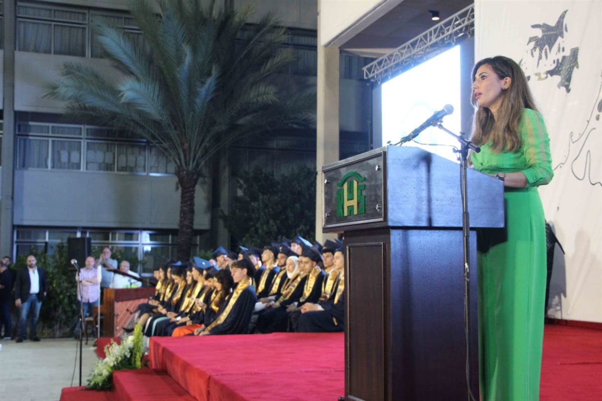 وقالت: "نحتفل اليوم بتخرج الدفعة الأكبر والتي تضم 109 من طلاب ثانوية رفيق الحريري لينضموا إلى 2654 من خريجي هذه المدرسة التي تعتزّ بكلّ خرّيجاتها وخرّيجيها وتفوّقهم في كافة المجالات. وإنّنا بهذه المناسبة العزيزة على قلوبنا جميعا نؤكّد حرصنا على تعزيز الشراكة مع كافة المدارس الرسمية والخاصة في منطقة صيدا والجوار، لأننا نؤمن بأنّ العدالة التربوية هي أساس الإستقرار الوطني في مجتمع التّسامح والتّعليم والتّحديث".