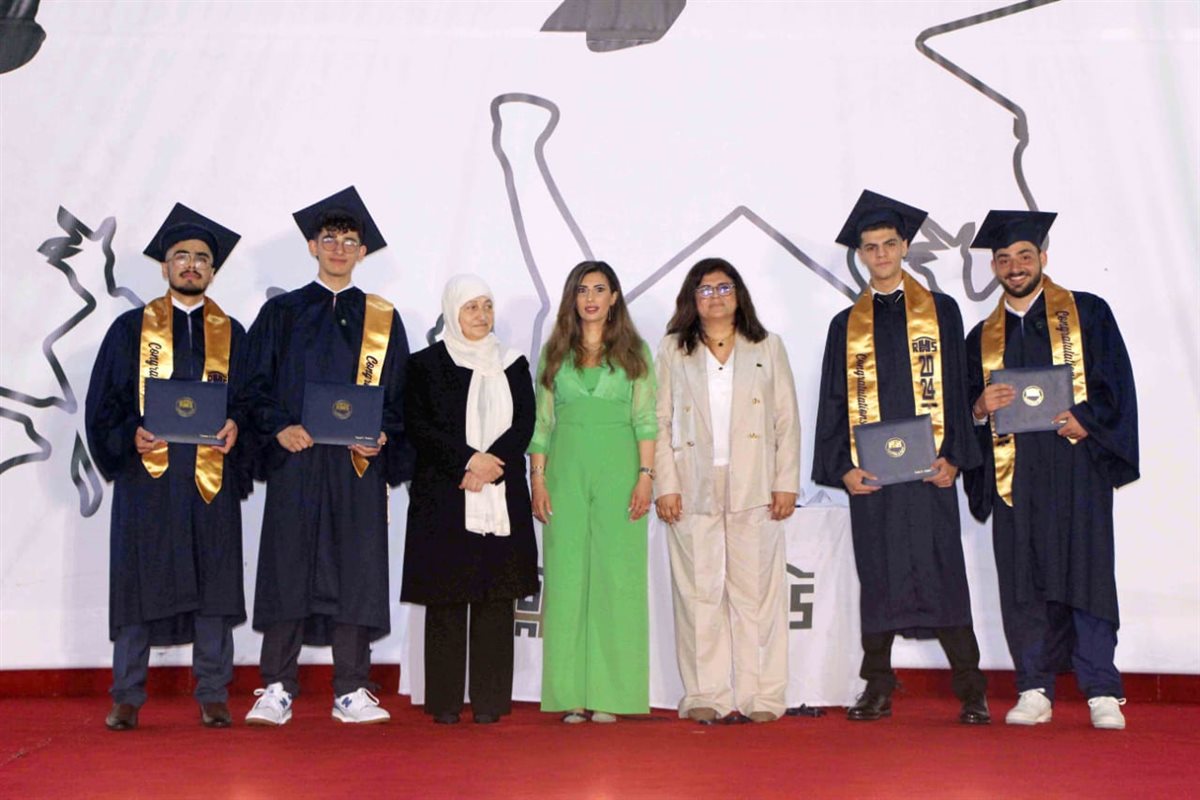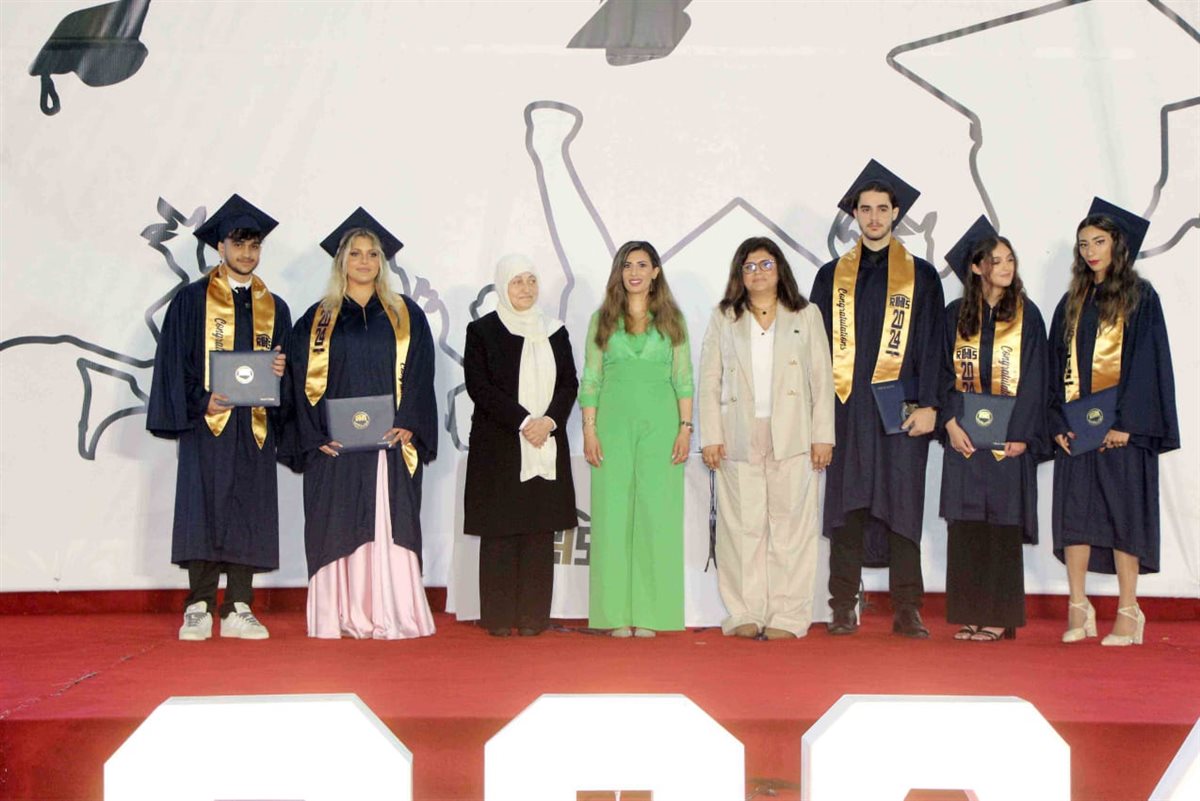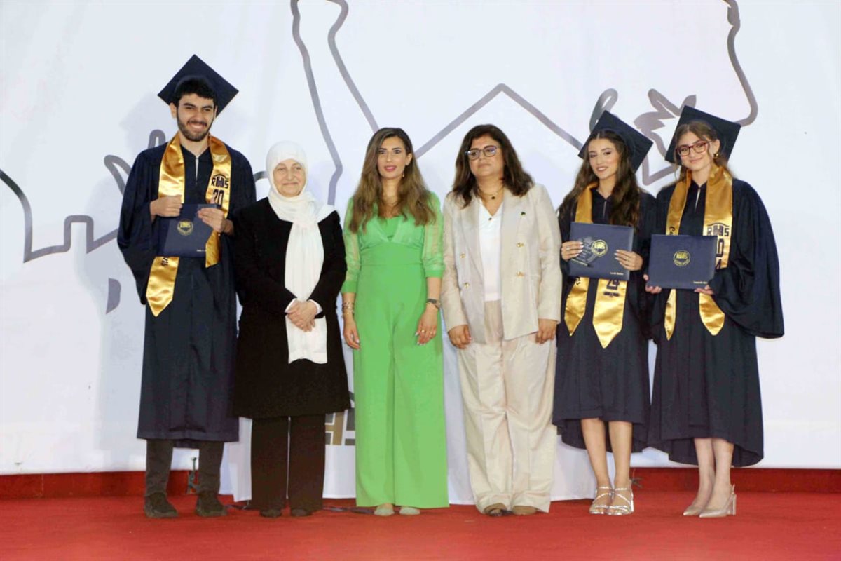 وفي الختام، وزعت الحريري بمشاركة زيدان ورئيسة القسم الثانوي الشهادات على الخريجين والخريجات والجوائز على أوائل الدفعة.
