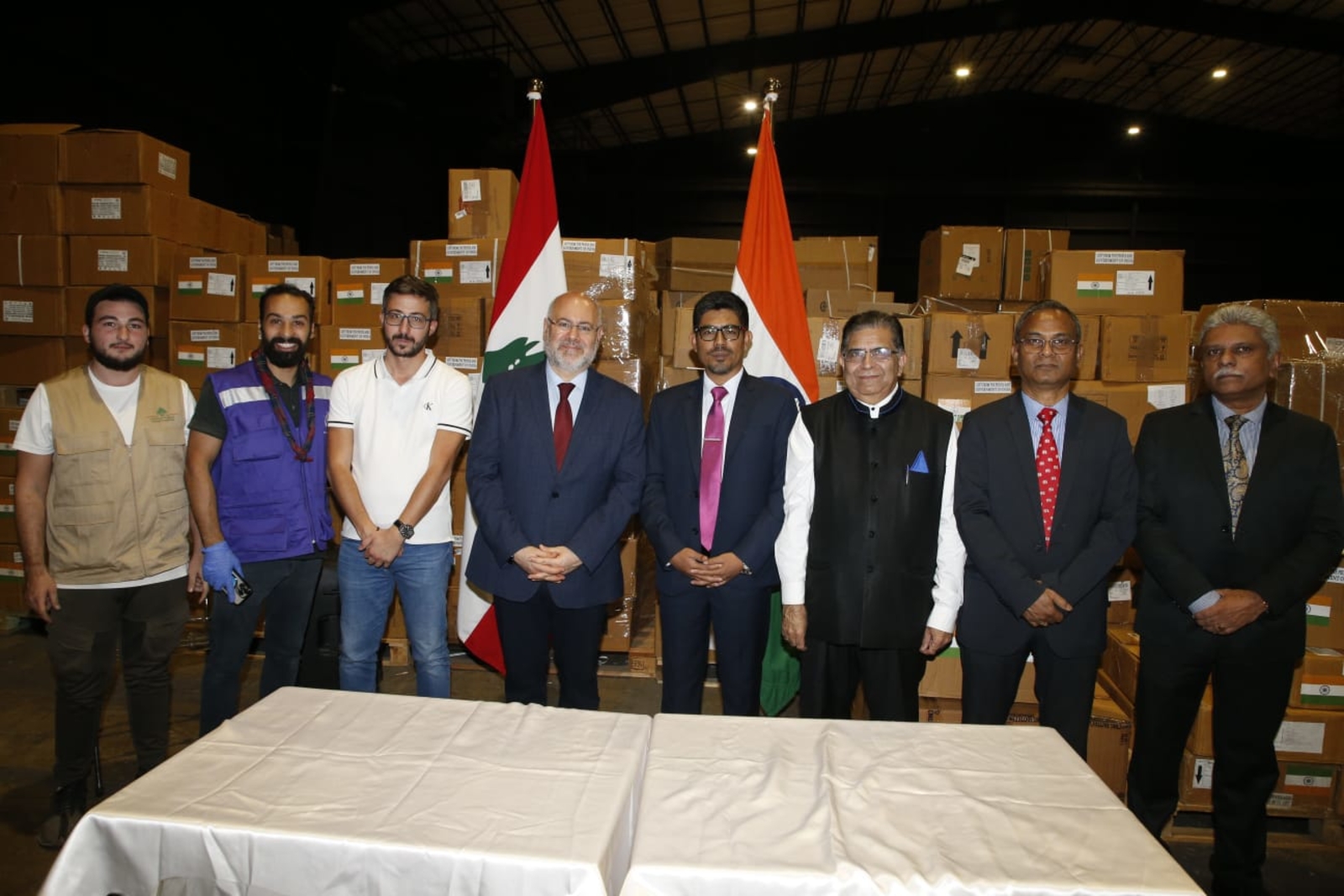 تسلم وزير الصحة العامة في حكومة تصريف الاعمال الدكتور فراس الابيض الدفعة الأولى من المساعدات الطبية الهندية التي تزن 33 طنًا إلى لبنان، كهدية من شعب وحكومة الهند بحضور سفير دولة الهند في لبنان محمد نور رحمن الشيخ, وذلك في المستودع المستحدث للمساعدات في البيال، في الواجهة البحرية لبيروت.