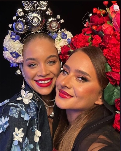 وارتدت نيللي كريم تاجا كبيرا من الورود الحمراء.