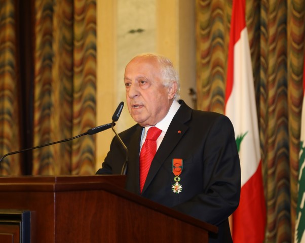 أيها الحضور الكرام، تقديرا لعطاءات السيد هشام جارودي من أجل لبنان، قرر فخامة رئيس الجمهورية العماد ميشال عون منحه وسام الأرز الوطني من رتبة ضابط، وكلفني وشرفني أن أقلده إياه، في هذه المناسبة وأن أتقدّم منه بأحرِ التهاني".
