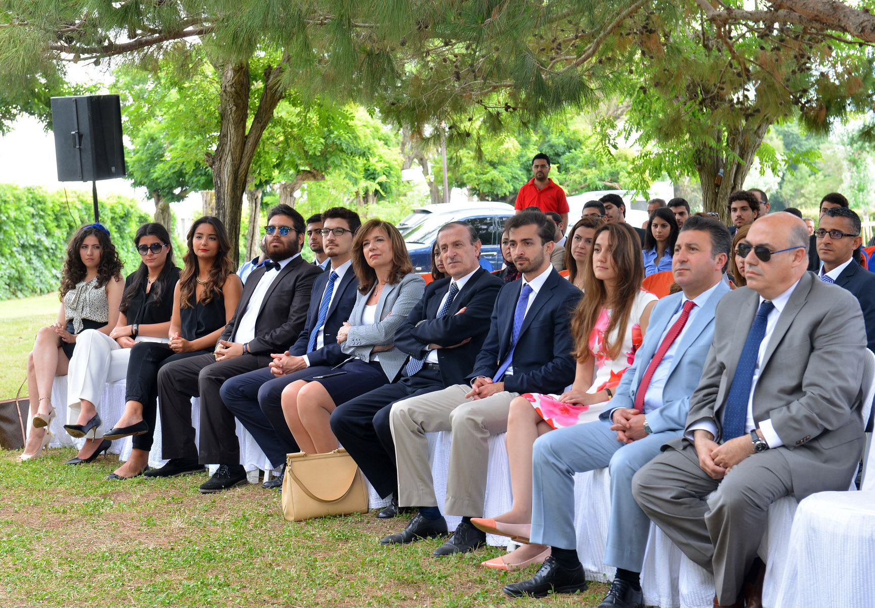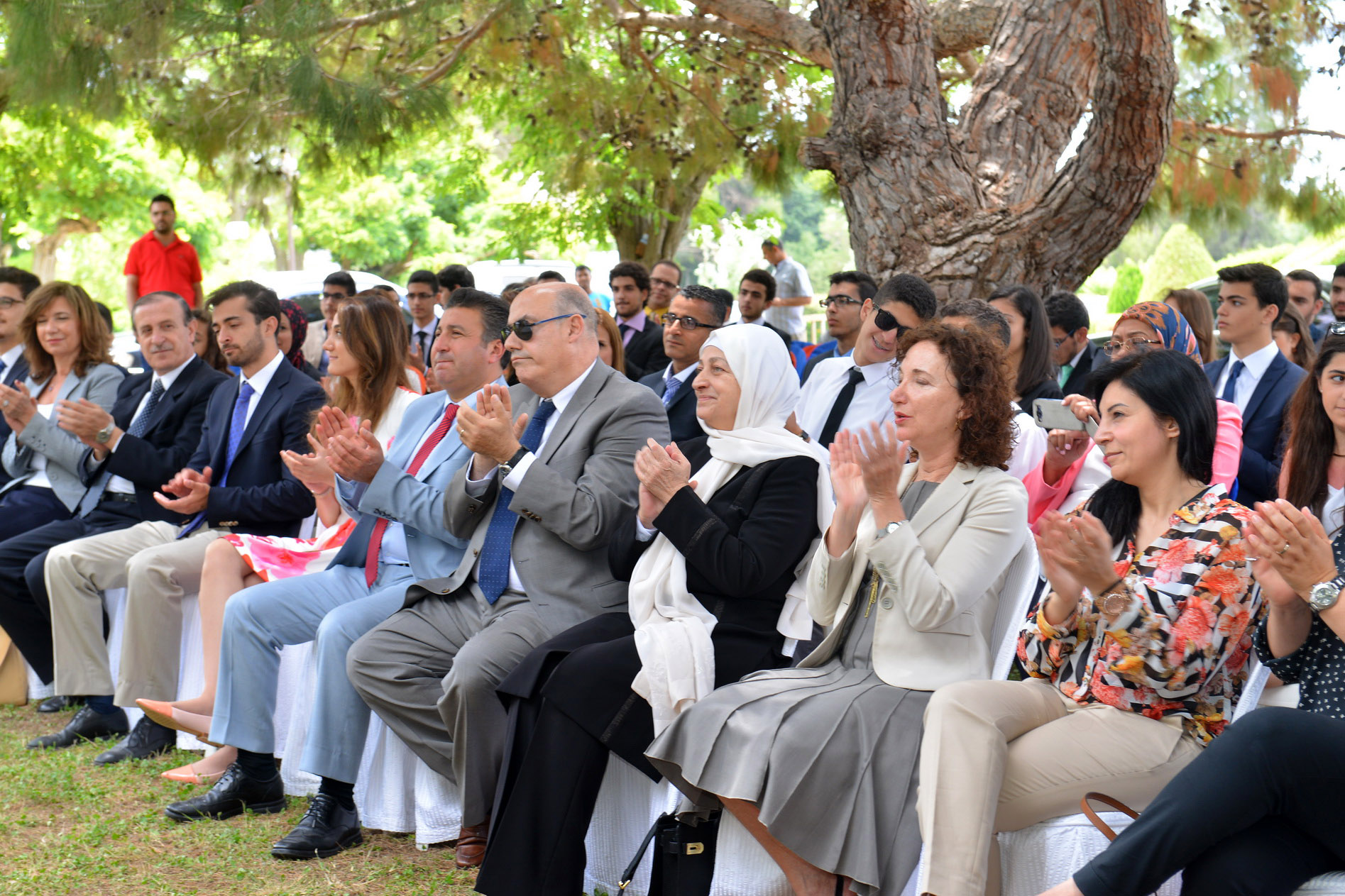 حضر الحفل:ممثلة رئيس الجامعة اللبنانية الأميركية الدكتور جوزيف جبرا نائبته الدكتورة ايليز سالم ، ومساعدها لشؤون التواصل الخارجي والالتزام المدني البرفسور ايلي سميا ومدير قسم التدريب في مصرف لبنان الدكتور محمد جبري والمديرة التنفيذية لمؤسسة الحريري روبينا ابو زينب واعضاء سكرتاريا الأمانة العامة لنموذج جامعة الدول العربية الرابع وفريق عمل جامعة LAU ومؤسسة الحريري والطلاب المشاركون واهاليهم.
