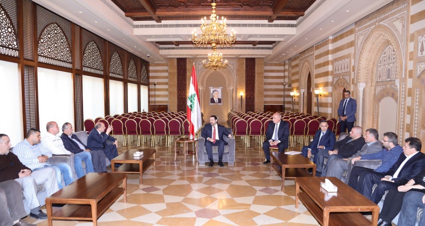استقبل رئيس مجلس الوزراء سعد الحريري بعد ظهر اليوم في "بيت الوسط" الهيئة التأسيسية لنقابة العاملين في المستشفيات الحكومية ونقابة مستخدمي المستشفيات الحكومية في الشمال في حضور رئيس الاتحاد العمالي العام بشارة الاسمر ومدير عام مستشفى طرابلس الحكومي ناصر عدره والامين العام لمجلس الوزراء فؤاد فليلفل.
