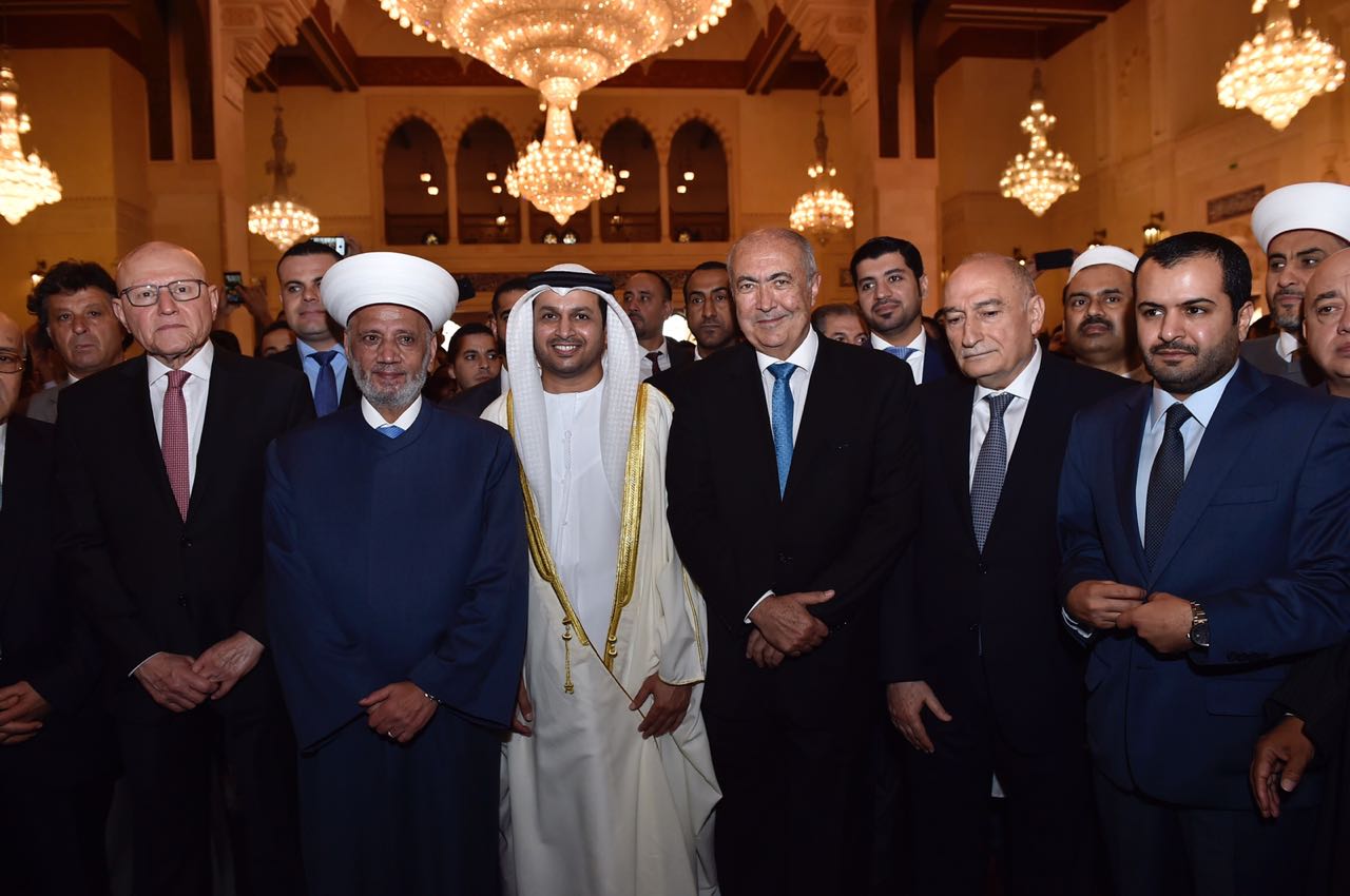 وكان سلام اصطحب مفتي الجمهورية من منزله صباحا إلى مسجد محمد الأمين يرافقهما عيتاني والايوبي في موكب رسمي وقدمت ثلة من قوى الأمن الداخلي التشريفات في باحة المسجد للرئيس سلام والمفتي دريان.