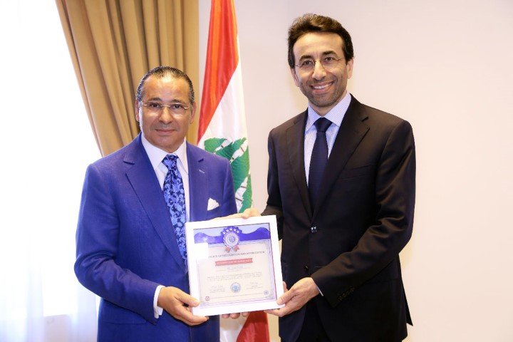 المحافظ شبيب التقى وفداً من جمعية آل قباني وجمعية تجار شارع مار الياس ومُنح درعاً تقديرة من منظمة الثقافة والبيئة الدولية