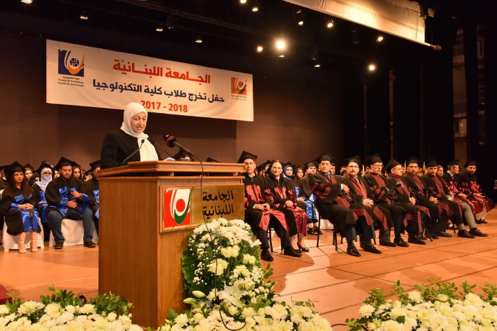 برعاية رئيس الحكومة المكلف سعد الحريري ممثلا برئيسة لحنة التربية النيابية النائب بهية الحريري، احتفلت كلية التكنولوجيا في الجامعة اللبنانية ( المعهد الجامعي للتكنولوجيا سابقاً) بتخريج دفعة من طلابها، وذلك في قاعة المؤتمرات في مجمع رفيق الحريري الجامعي في الحدث، بحضور رئيس الجامعة اللبنانية البروفسور فؤاد أيوب، الدكتور وليد صافي ممثلا رئيس اللقاء الديمقراطي النائب تيمور جنبلاط، رئيس الهيئة التنفيذية لرابطة الأساتذة المتفرغين في الجامعة اللبنانية الدكتور محمد صميلي، عميد كلية التكنولوجيا الدكتور محمد الحجار وعدد من العمداء والمديرين والأساتذة وموظفي الجامعة اللبنانية وأهالي الطلاب.