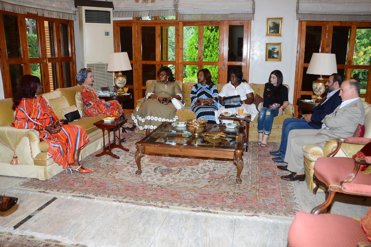 استقبلت عقيله رئيس مجلس النواب السيده رندى عاصي بري في دارتها في مصيلح بنات رئيس جمهوريه الكونغو السيده جوليات والسيده نينيل ساسو تغسو في زياره تعارف