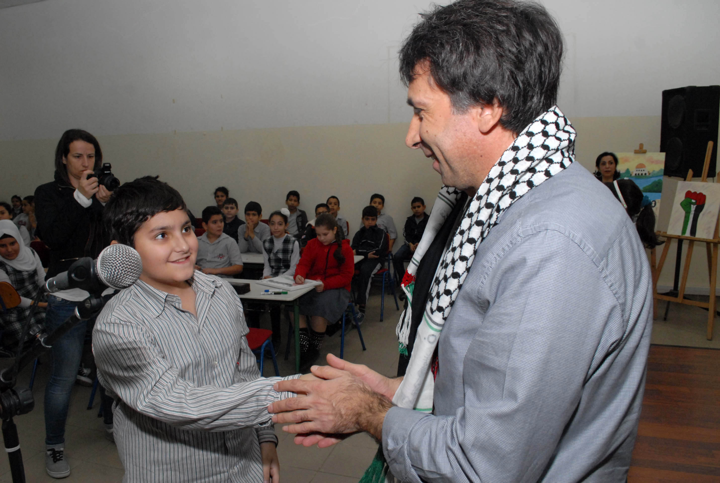 وقام طالبان من مدرستي رفيديا ودير القاسي بتقليد السعودي وزيدان الكوفية الفلسطينية .