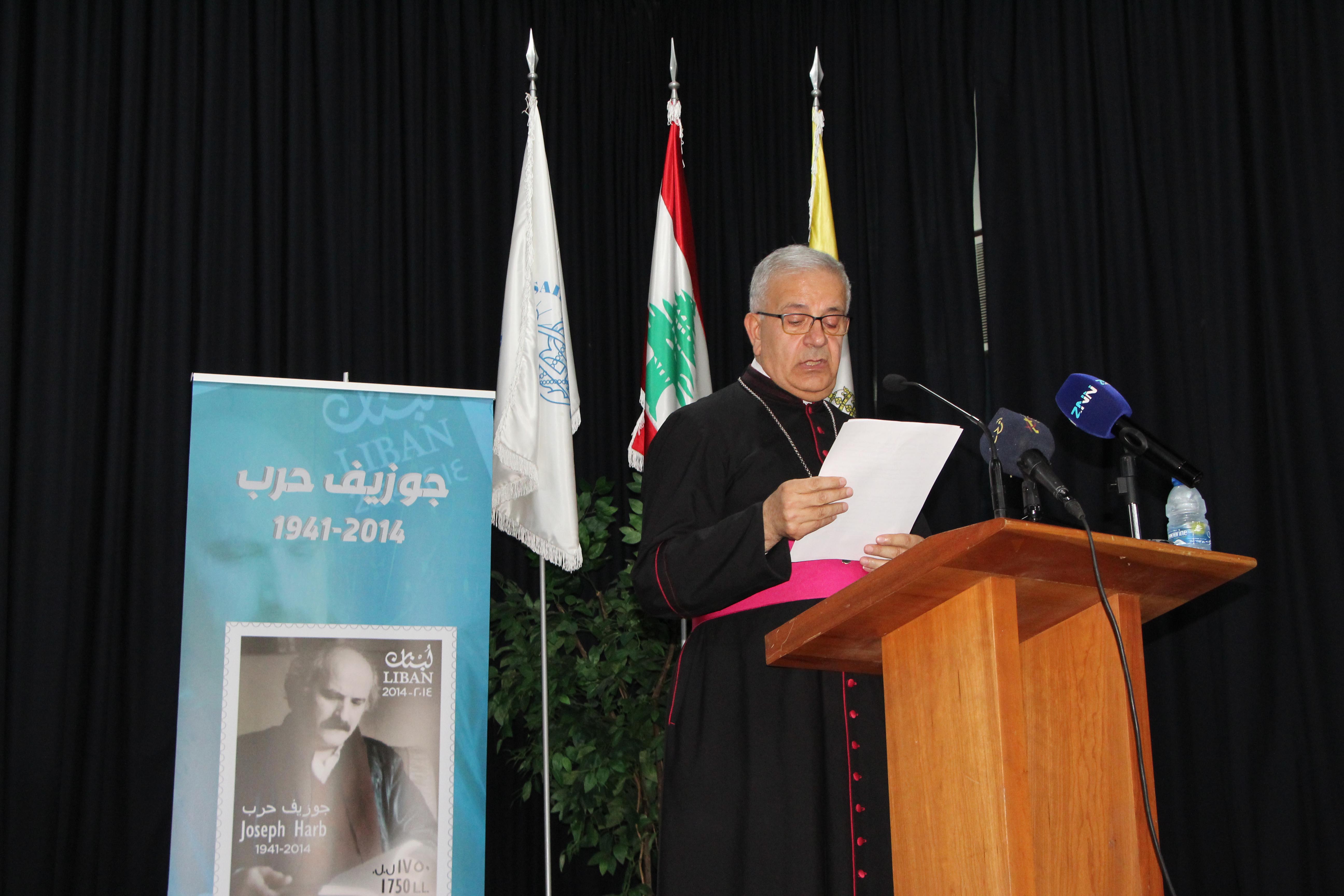 والقى المطران مارون العمار كلمة استعاد فيها بدايات ومراحل معرفته بالشاعر والأديب الراحل جوزف حرب .. وقال:" وبعد قراءتي لكتاب "جوزف حرب.. سمفونية فصول "عرفت أكثر كم كان حوزف حرب شاعراً ملهماً وأديباً فذاً وفيلسوفاً فريداً. وها هو أخي ورفيقي وصديقي الخوري ميشال يضع هذا الكتاب بروح شاعرية ولغة أنيقة وسمفونية رمزية تحاكي أدب وشعر "جاره العزيز" ، وذلك ليرد جميلاً صغيراً لذلك العبقري الشامخ القامة ، صاحب القلب المفتوح على اللامحدود . فالخوري ميشال هو من مقلع جوزف حرب لأنهما تنشقا نفس الهواء وشربا من ذات المياه وكحلا عينيهما بذات الطبيعة وحاول كل منهما باختصاصه أن يعبر عن تعلقه بالإنسان والطبيعة هامساً حبه مع زقزقات الطيور ومستنشقا الجمال من عبير الرياحين . لقد ابدعت أيها العزيز الخوري ميشال وسوف تكون مرجعا لكل من أراد أن يدرس أدب جوزف حرب الشاعر والإنسان والفيلسوف حياك الله . وختم العمار بتوجيه التحية لجميع المشاركين في هذا التكريم وكل من ساهم بنجاحه وإنجاز الكتاب وتقديم التمثال النصفي للشاعر المكرم .