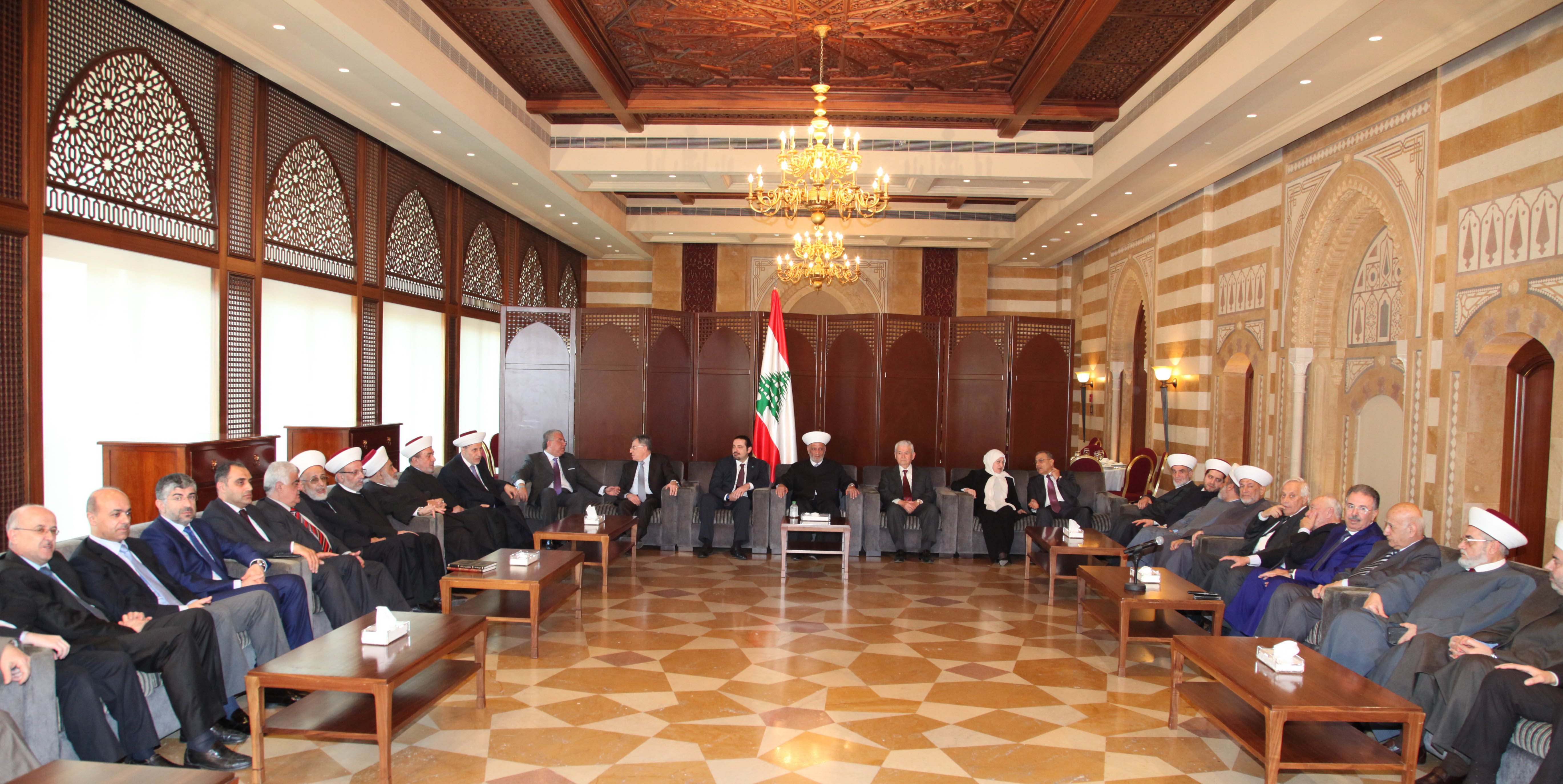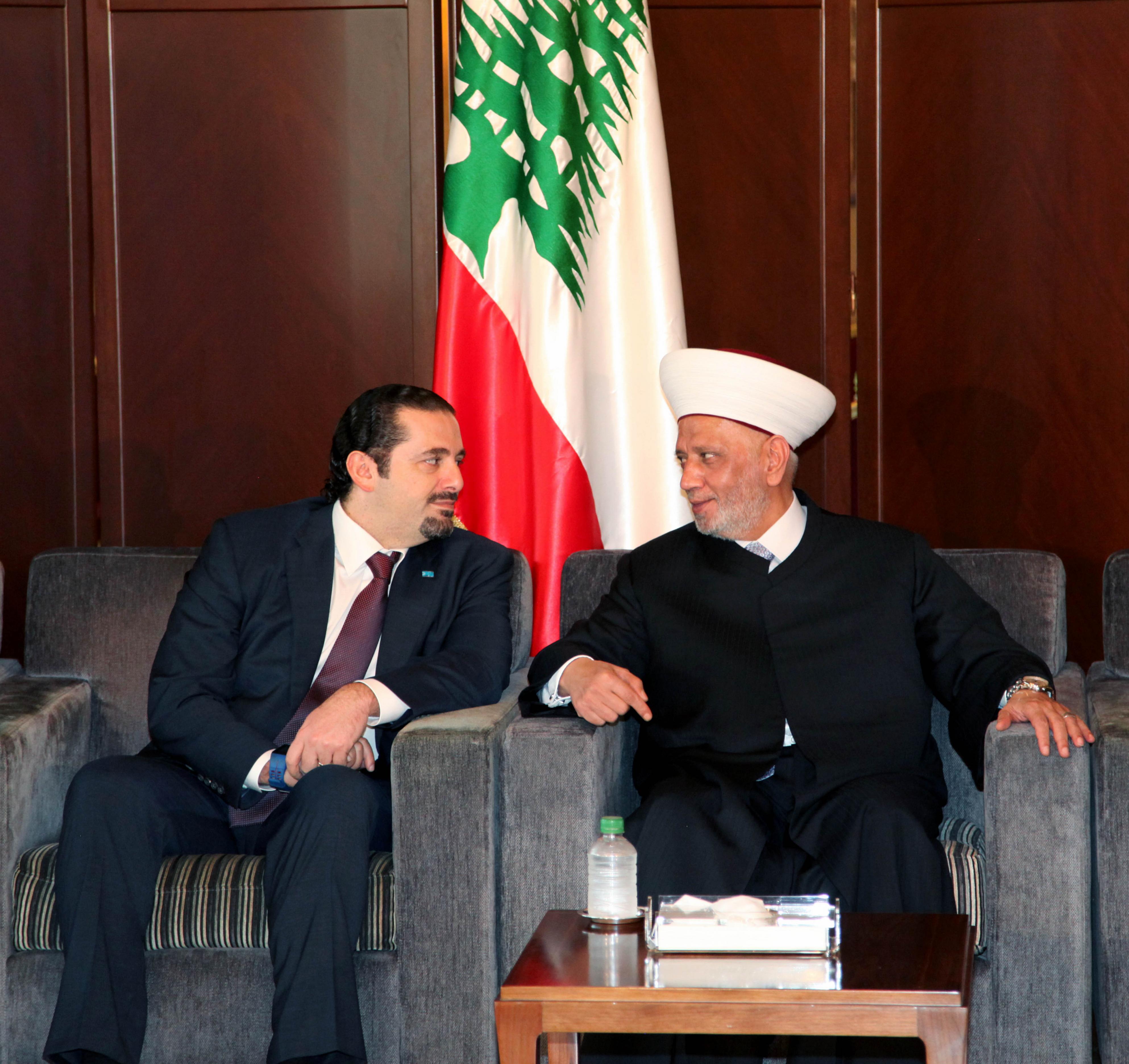 استقبل الرئيس سعد الحريري ظهر اليوم في بيت الوسط اعضاء المجلس الشرعي الاسلامي الاعلى برئاسة مفتي الجمهورية اللبنانية الشيخ عبداللطيف دريان وحضور نائب الرئيس الووير السابق عمر مسقاوي والاعضاء و الرئيس فؤاد السنيورة ، وزير الداخلية والبلديات نهاد المشنوق، النائب بهية الحريري، مفتي طرابلس والشمال الشيخ مالك الشعار ،مفتي البقاع الشيخ خليل الميس، مفتي جبل لبنان الشيخ محمد علي الجوزو، مفتي صيدا والجنوب الشيخ سليم سوسان، مفتي حاصبيا ومرجعيون الشيخ حسن دلّة، مفتي بعلبك الشيخ خالد الصلح، مفتي صور الشيخ مدرار حبال ومفتي راشيا احمد اللدن .