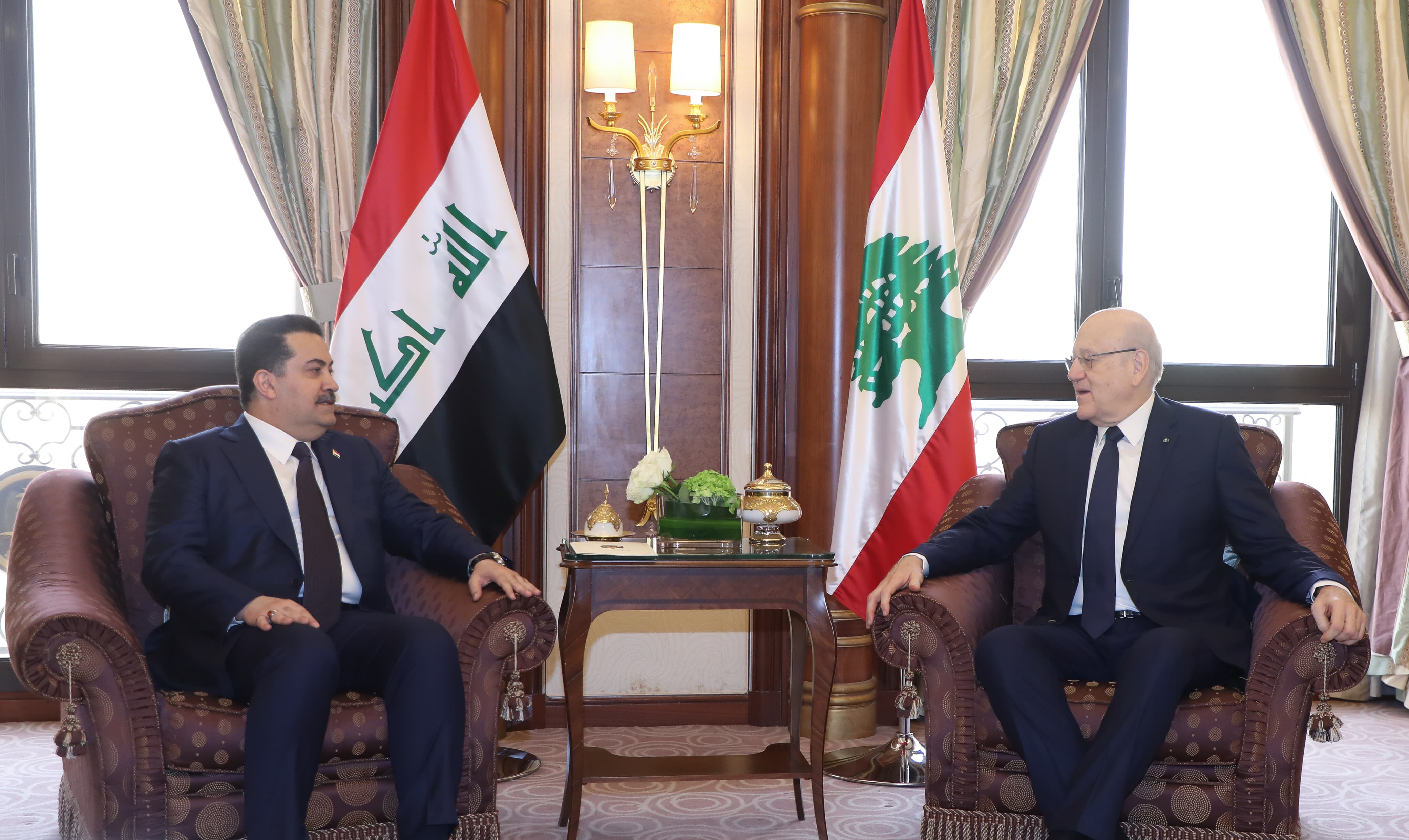 كما اجتمع رئيس الحكومة مع رئيس وزراء العراق محمد شياع السوداني، في حضور الوزيرين بو حبيب والحاج حسن والوفد العراقي المرافق.