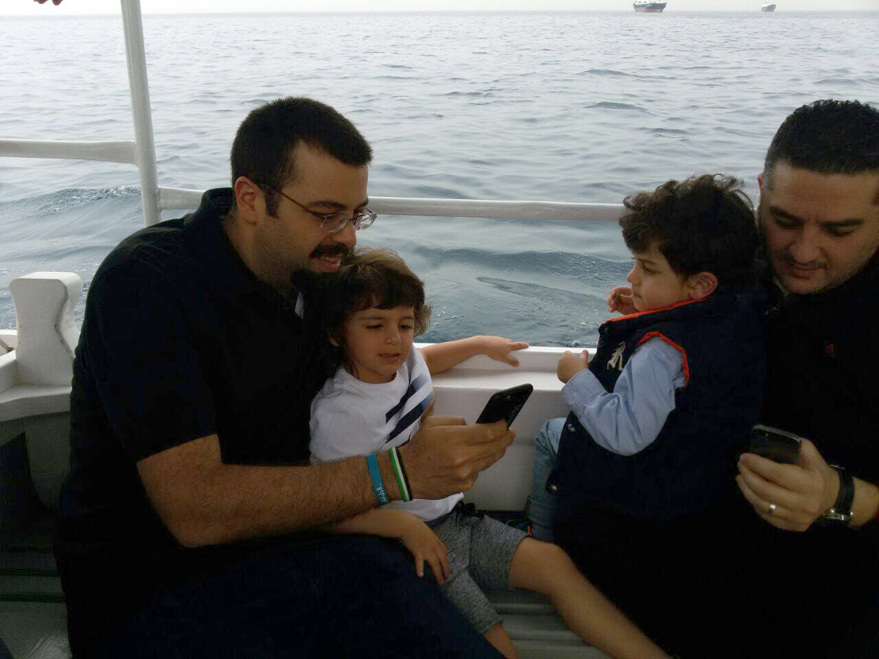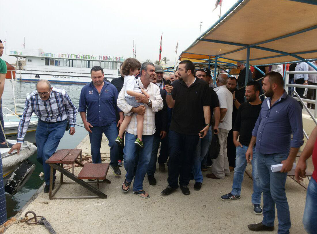 جولة الحريري شملت ايضا بحر المدينة حيث استقل احد المراكب المخصصة للنزهة مع مواطنين كانوا في رحلة الى "الزيرة "مصطحبا معه ابنه " مصطفى " .