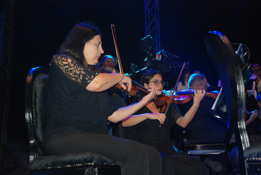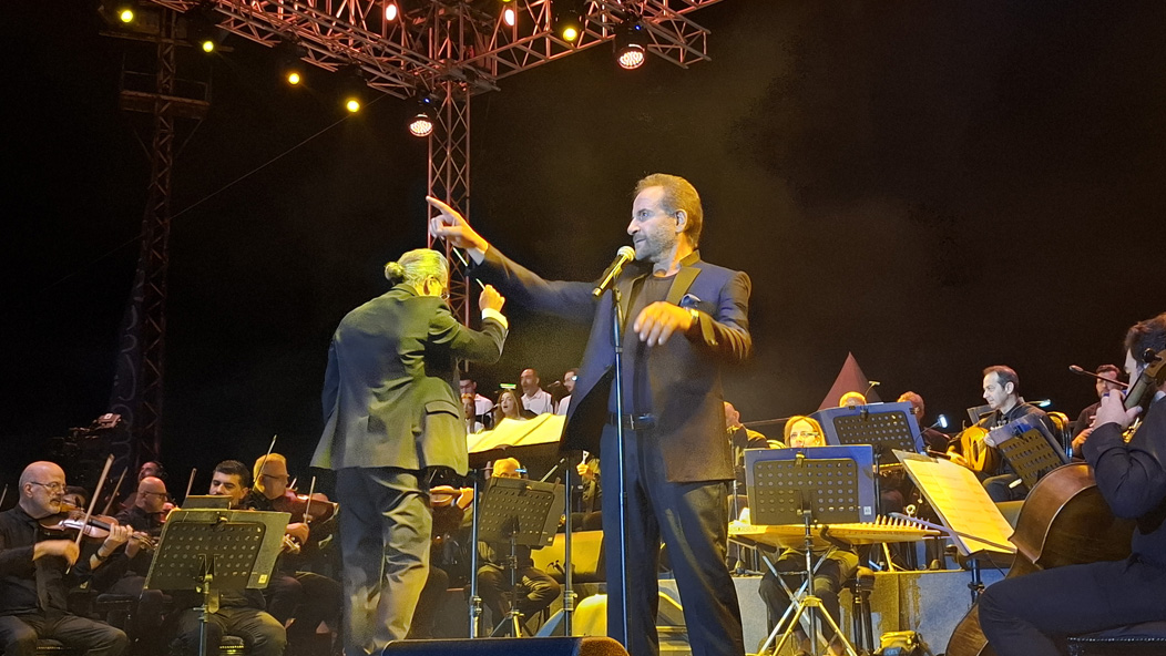 بعد ذلك قدمت الأوركسترا الشرق عربية في المعهد الوطني للموسيقى بقيادة المايسترو أندريه الحاج بمشاركة الفنان غسان صليبا باقة من روائع الأغنيات الشعبية والتراثية والرومانسية التي خلدت في الذاكرة اللبنانية ، وسط تفاعل ومشاركة من الجمهور ، وخصص صليبا صيدا بموال خاص والجنوب بأغنية : الله معك يا بيت صامد بالجنوب " الى جانب اغنياته الشهيرة " وطني بيعرفني ، غريبين وليل ، يا حلوة شعرك داري ، يا اهل الأرض .. لمعت أبواق الثورة " وتحية خاصة للجيش اللبناني . ورافق بعض الأغنيات التي قدمها صليبا لوحات تراثية من الدبكة اللبنانية قدمتها فرقة " هياكل بعلبك".
