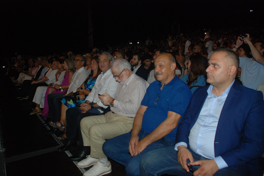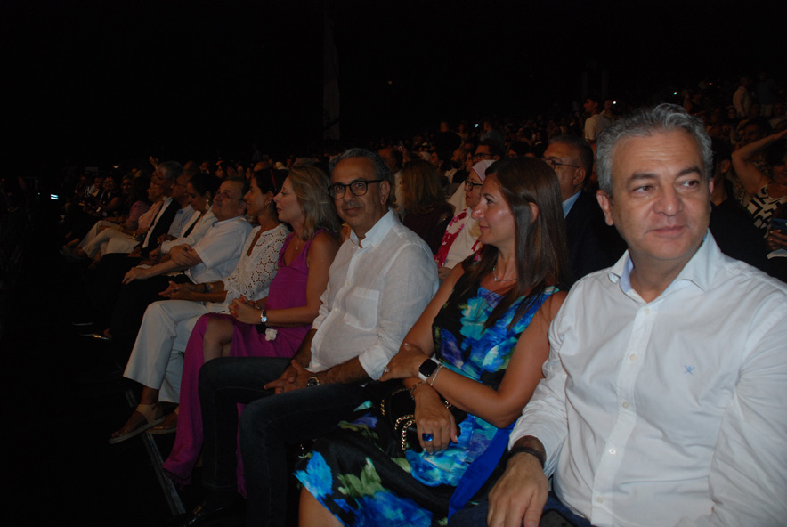 تقدم حضور الحفل الافتتاحي للمهرجانات : عقيلة رئيس الجمهورية العماد جوزاف عون السيدة الأولى السيدة نعمت عون ، وعقيلة رئيس مجلس الوزراء القاضي نواف سلام السفيرة السيدة سحر بعاصيري ، وممثل رئيس مجلس النواب الأستاذ نبيه بري النائب الدكتور ميشال موسى ، الرئيس الأستاذ فؤاد السنيورة ، ممثل وزير الثقافة الدكتور غسان سلامة مدير عام الوزارة الدكتور علي الصمد ، والنواب " الدكتور أسامة سعد ، الدكتور عبد الرحمن البزري ، الدكتور شربل مسعد ، والدكتورة غادة أيوب "، النائب السابق الأستاذ أمل أبو زيد ، مدير عام السياحة السيدة جمانة كبريت ،عضو المكتب السياسي لتيار المستقبل الدكتور ناصر حمود ومنسق عام التيار في صيدا والجنوب الأستاذ مازن حشيشو، السفير عبد المولى الصلح، رئيس اتحاد بلديات صيدا الزهراني رئيس بلدية صيدا المهندس مصطفى حجازي ، رئيس جمعية محمد زيدان للإنماء السيد محمد زيدان ، رئيسة المعهد الوطني العالي للموسيقى" الكونسرفتوار " الدكتورة هبة قواس وأعضاء مجلس إدارة المعهد. وحضر من القادة الأمنيين والعسكريين : العميد محمد الشريف ، رئيس شعبة المعلومات في قوى الأمن الداخلي العميد محمود قبرصلي ، رئيس فرع مخابرات الجيش اللبناني في الجنوب العميد سهيل حرب ، قائد منطقة الجنوب الإقليمية في قوى الأمن الداخلي العميد أحمد أبو ضاهر ، المدير الإقليمي للأمن العام في الجنوب العميد علي قطيش ، رئيس شعبة الأمن القومي في معلومات الأمن العام العقيد حيدر قبيسي ، ومسؤول الشعبة في صيدا الرائد وليد عويدات ، رئيس مكتب مخابرات الجيش في صيدا الرائد هادي الحاج شحادة ، وشخصيات رسمية ودبلوماسية واقتصادية واجتماعية وفنية وثقافية وإعلامية وجمهور حاشد من كل المناطق اللبنانية ملأ المدرجات .وكان في استقبالهم رئيسة اللجنة الوطنية لمهرجانات صيدا الدولية السيدة نادين كاعين والسيدات أعضاء اللجنة .