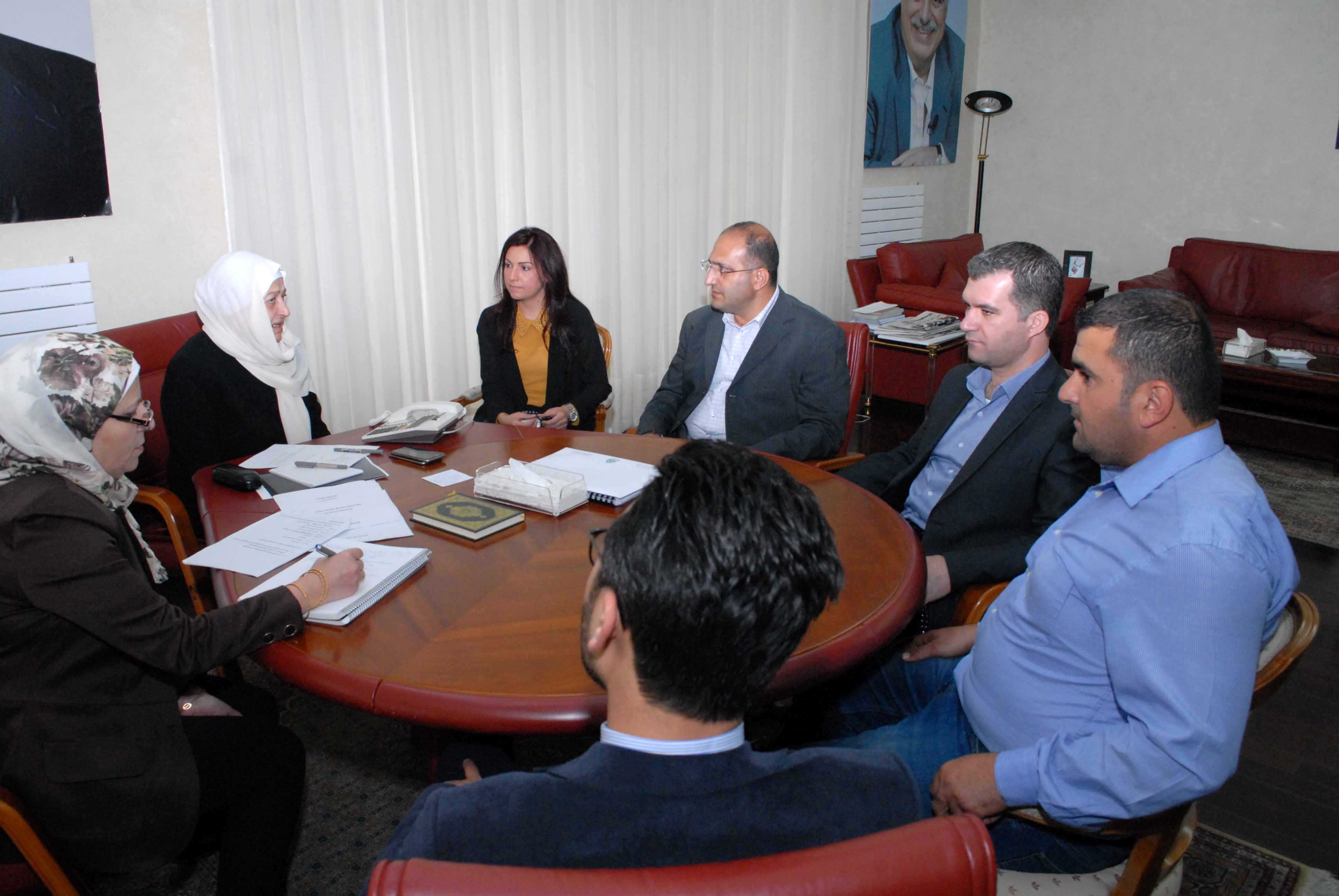 وتقدم الوفد رئيسة الجمعية أمال اليمن وضم : نائب الرئيس زياد ضاهر وعضوي الجمعية "محمد شكرون وحسين جرادي"، ورافقهم رئيس قسم الهندسة الصناعة في المعهد الدكتور نظير شبو.