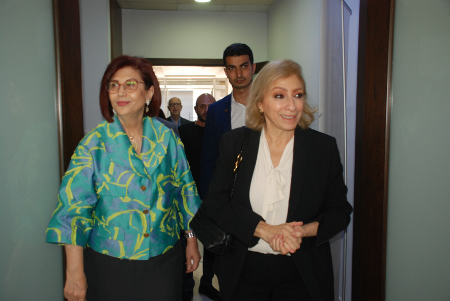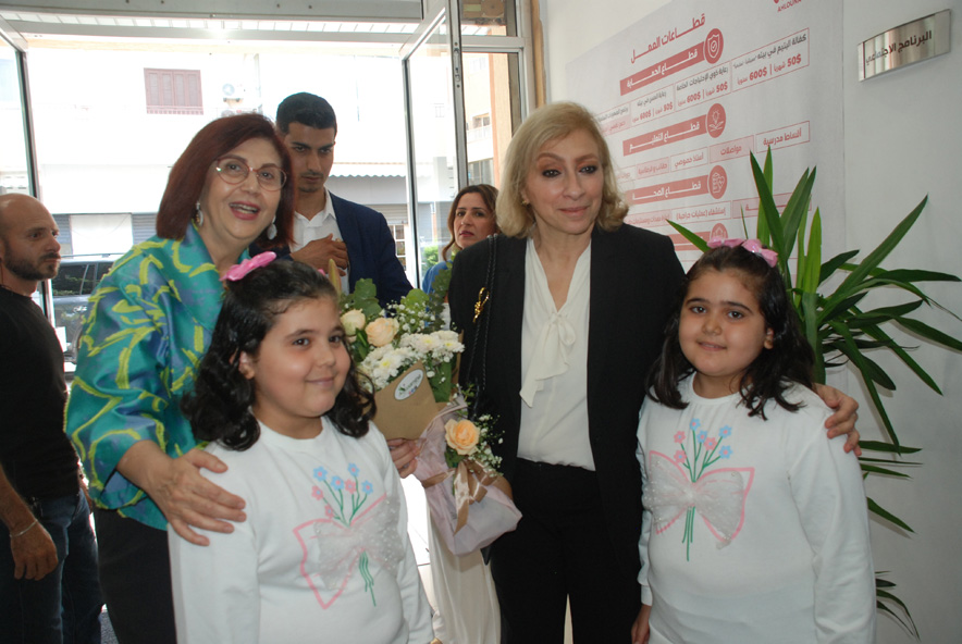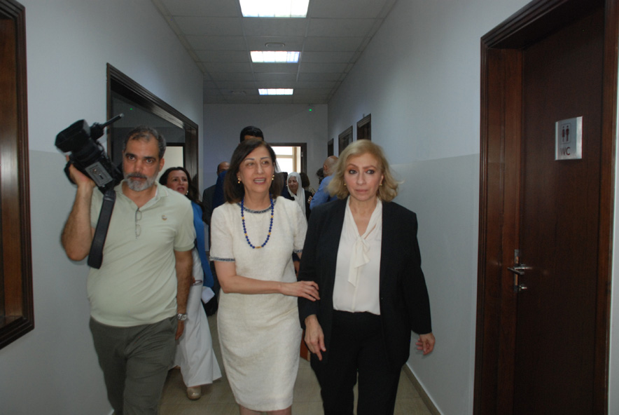 وقامت السفيرة بعاصيري والسيدتان الحريري والسنيورة برفقة الجبيلي بجولة مع بعض الشخصيات الحاضرين وأعضاء الهيئة الإدارية على أقسام الجمعية فتفقدت غرف الدعم النفسي ، والتقت كورال الجمعية الذي أدى النشيد الوطني اللبناني ونشيد أهلنا وأغنية للسيدة فيروز . ثم زارت السفيرة بعاصيري المعمل الإنتاجي واطلعت من الجبيلي على أقسامه وما ينتجه من مأكولات وحلويات ، والتقت العاملات فيه مثنية على جهودهن.