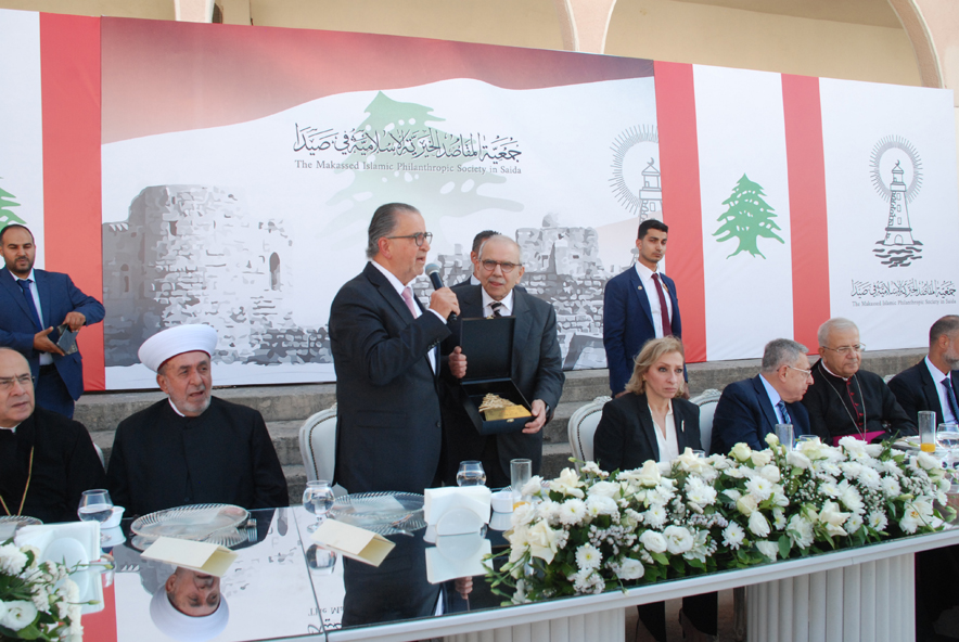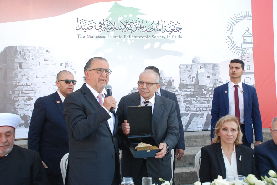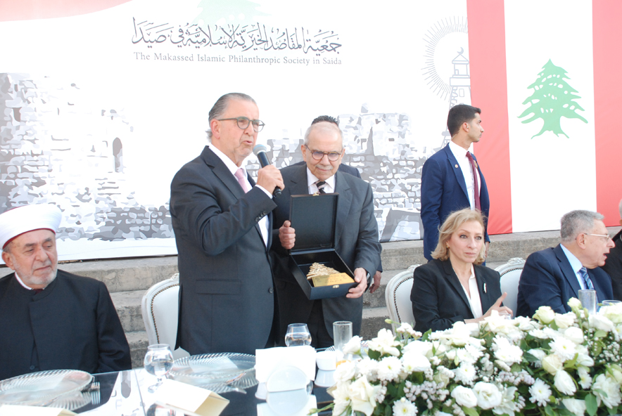بعدها، قدم رئيس الجمعية درعاً مُذهباً الى الرئيس سلام، مثمّناً زيارته إلى صيدا، و"المقاصد".