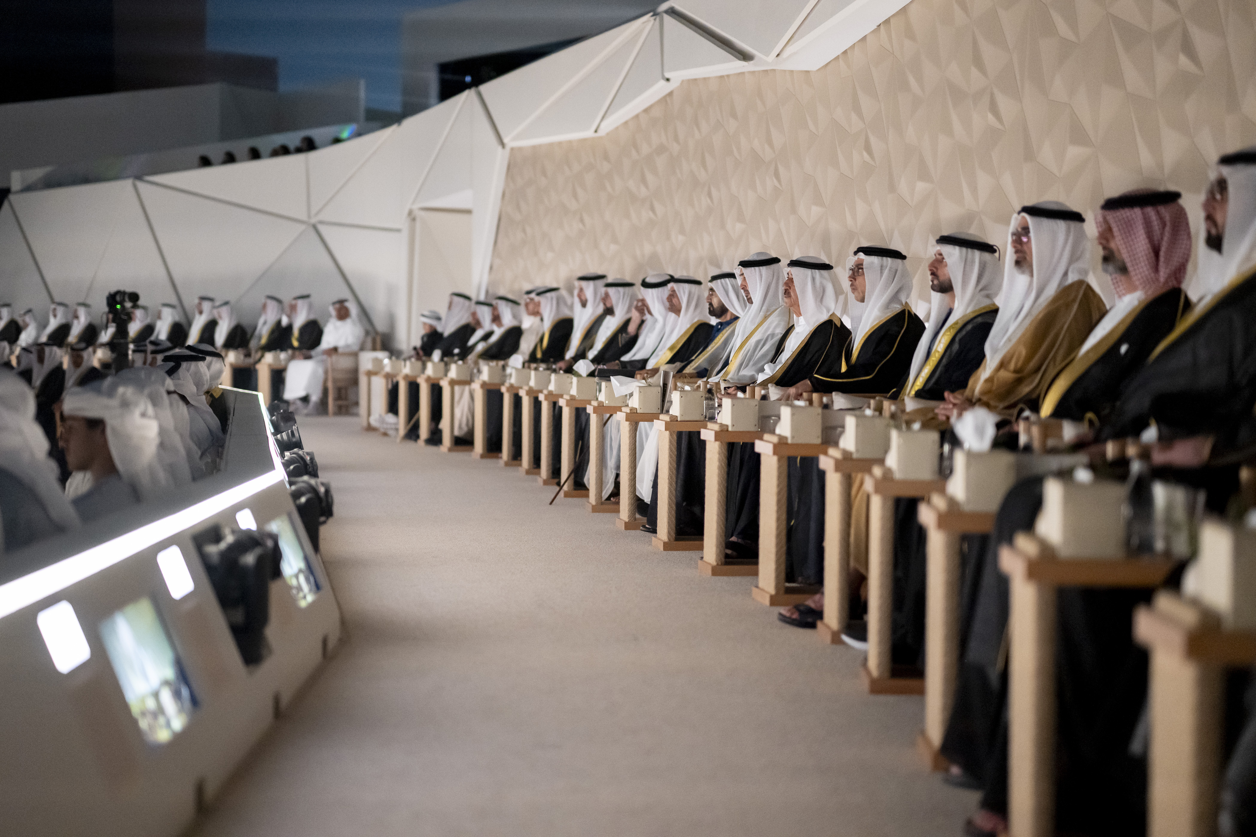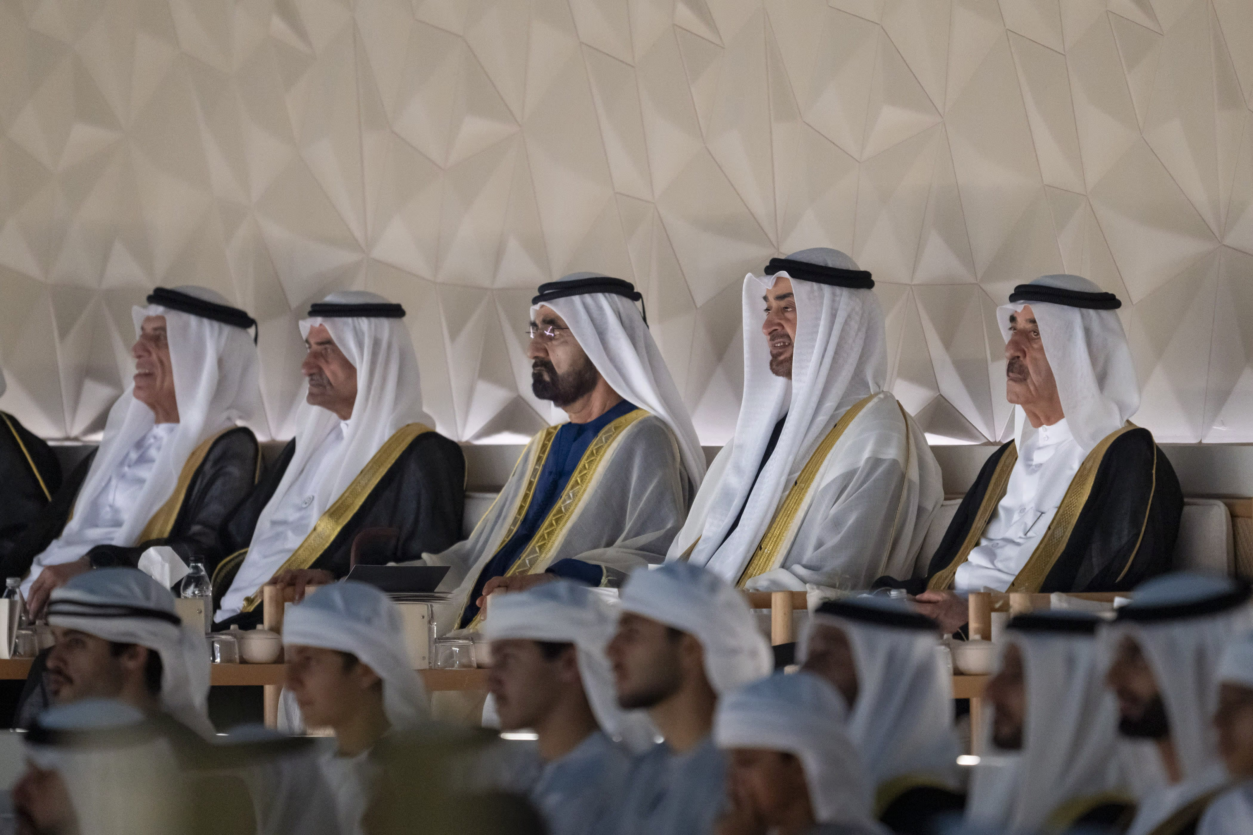 كما حضر الحفل.. سمو الشيخ خالد بن محمد بن زايد آل نهيان ولي عهد أبوظبي وسمو الشيخ حمدان بن محمد بن راشد آل مكتوم ولي عهد دبي نائب رئيس مجلس الوزراء وزير الدفاع وسمو الشيخ سلطان بن محمد بن سلطان القاسمي ولي العهد نائب حاكم الشارقة وسمو الشيخ عمار بن حميد النعيمي ولي عهد عجمان وسمو الشيخ محمد بن حمد بن محمد الشرقي ولي عهد الفجيرة وسمو الشيخ راشد بن سعود بن راشد المعلا ولي عهد أم القيوين وسمو الشيخ محمد بن سعود بن صقر القاسمي ولي عهد رأس الخيمة وسمو الشيخ سلطان بن أحمد بن سلطان القاسمي نائب حاكم الشارقة وسمو الشيخ أحمد بن سعود بن راشد المعلا نائب حاكم أم القيوين وسمو الشيخ حمدان بن زايد آل نهيان ممثل الحاكم في منطقة الظفرة وسمو الشيخ هزاع بن زايد آل نهيان ممثل الحاكم في منطقة العين وسمو الشيخ سيف بن محمد آل نهيان وسمو الشيخ سرور بن محمد آل نهيان وسمو الشيخ نهيان بن زايد آل نهيان رئيس مجلس أمناء مؤسسة زايد بن سلطان آل نهيان للأعمال الخيرية والإنسانية والفريق سمو الشيخ سيف بن زايد آل نهيان نائب رئيس مجلس الوزراء وزير الداخلية وسمو الشيخ حامد بن زايد آل نهيان وسمو الشيخ عبد الله بن زايد آل نهيان، نائب رئيس مجلس الوزراء وزير الخارجية وسمو الشيخ عمر بن زايد آل نهيان نائب رئيس مجلس أمناء مؤسسة زايد بن سلطان آل نهيان للأعمال الخيرية والإنسانية وسمو الشيخ خالد بن زايد آل نهيان رئيس مجلس أمناء هيئة زايد لأصحاب الهمم وسمو الشيخ الدكتور سلطان بن خليفة آل نهيان مستشار صاحب السمو رئيس الدولة وسمو الشيخ ذياب بن محمد بن زايد آل نهيان نائب رئيس ديوان الرئاسة للشؤون التنموية وأسر الشهداء وسمو الشيخ حمدان بن محمد بن زايد آل نهيان نائب رئيس ديوان الرئاسة للشؤون الخاصة وسمو الشيخ زايد بن محمد بن زايد آل نهيان وعدد من الشيوخ والوزراء وكبار المسؤولين.