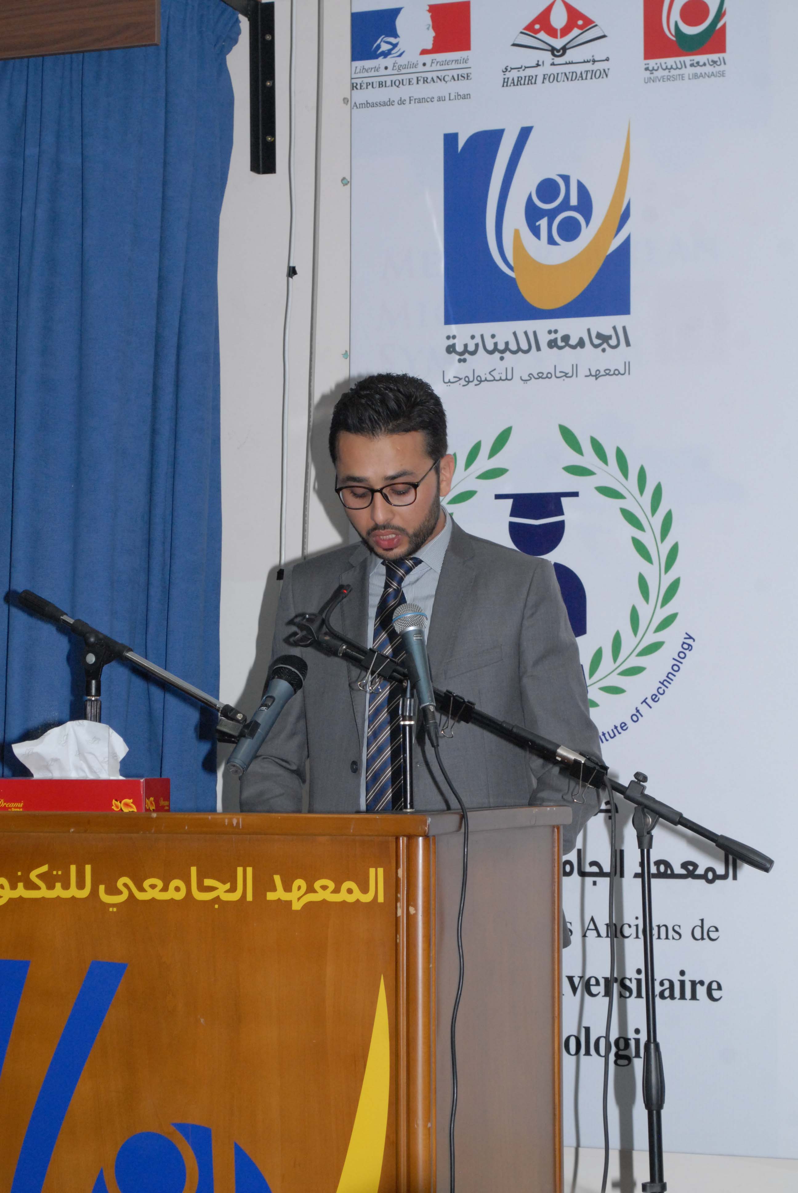 والقى ممثل رئيس الجامعة الدكتور محمد الحجار كلمة توجه فيها بالتحية للمؤسسين الاوائل للمعهد الجامعي للتكنولوجيا مؤسسة الحريري والحكومة الفرنسية والجامعة اللبنانية منوها بانشاء جمعية لخريجي المعهد ومتوقفا عندما تم انجازه ..فقال : لقد انجز الاسبوع الماضي النظام الداخلي الجديد للمعهد اذ يعود آخر تعديل للعام 2006 كما وانجزت المناهج الجديدة التي تتضمن فتح الماسترات المهنية المتخصصة ليتسنى لمن يرغب متابعة تحصيله الجامعي في المعهد، وقد ساهم في هذا الانجاز افراد الهيئة التعليمية ومجلس الوحدة في المعهد بعد ان اجريت مناقشات واسعة ومعمقة وشكلت لجان متخصصة وعقدت اجتماعات متعددة على مدى اكثر من 10 اشهر، وقد اصبح هذا المشروع قيد الدراسة والمصادقة ، وتم اطلاق ورشة لصيانة التجهيزات الموجودة حاليا في المختبرات ، واجراء مناقصة لتحديث مختبرات المعلوماتية والاتصالات وقاعات التدريس. كما اننا في صدد اعداد مناقصة اخرى لتحديث المختبرات المتبقية بالمعدات الثقيلة والمتطورة وتم تكليف لجان عدة لصيانة واعادة تأهيل المباني لمكننة وتحديث العمل الاداري ،وتم السير بمشروع تقييم الاساتذة من قبل الطلاب واعتماد طرق حديثة ومتطورة في التعليم عبر اجراء دورات مكثفة ومركزة على تقنيات متقدمة .