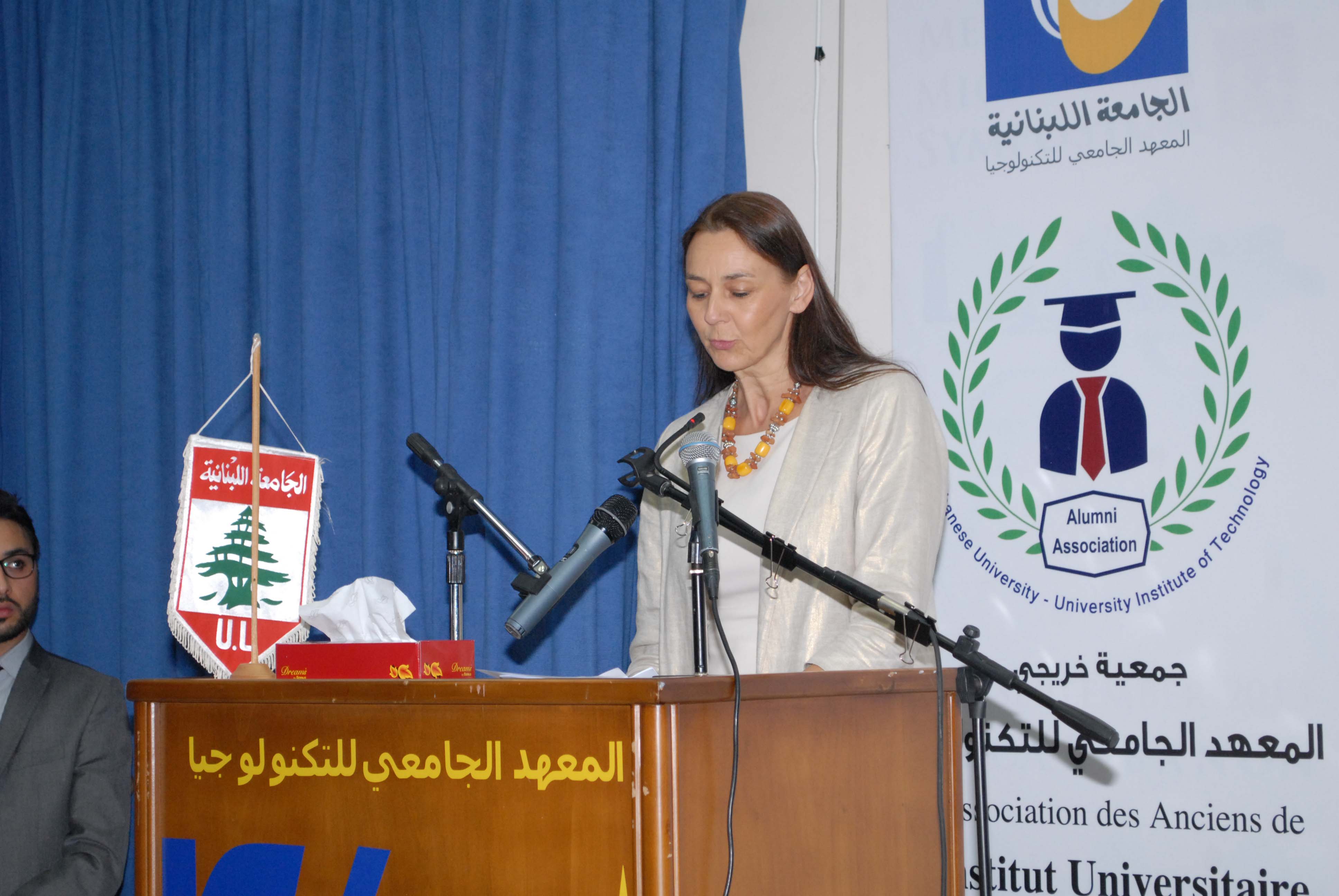 كلمة السفير الفرنسي ايمانويل بون القتها ممثلته برناديت شيهو فقالت : هذه التظاهرة مؤثرة بشكل خاص على اكثر من عنوان ، العنوان الاول هدف المعهد الجامعي للتكنولوجيا والمكانة التي يحتلها لجهة التعاون الثنائي ومن ناحية انشاء هذه الجمعية والتي ستشكل شبكة تجمع وتوحد واحدى وسائل التعاون خصوصا وان السفارة الفرنسية تعمل على مشروع مماثل .كما ان اهمية هذا اللقاء تكمن في انه يقام في المعهد الذي هو ثمرة تعاون بين البلدين فرنسا ولبنان والتي كانت نتيجة اتفاق بين الرئيس جاك شيراك والرئيس رفيق الحريري وتمثلت بتعاون بين الجامعة اللبنانية ومؤسسة الحريري والحكومة الفرنسية منذ نحو عشرين سنة ، وبالتعاون مع المدرسة العليا للاعمال الفرنسية ابصر المعهد الجامعي النور بنفس روحية التعاون ليكون رأسمال كفاءة في خدمة لبنان والتعليم التكنولوجي الذي هو ضرورة لتطوير الاقتصاد . وهذا النموذج كان ناجحا بديناميته وجودة تعليمه ، ويتمثل ذلك بالنسبة العالية التي ولجت سوق العمل من الخريجين . وان تعاوننا يتمثل في انه يوجد 85 بالمئة من خريجي فرنسا من المعهد وعشرين اتفاقية تعاون تمت ما بين المعهد والحكومة الفرنسية .وان جمعية الخريجين تسمح بهيكلة شبكة اعضائها متلاحمين وفخورين بانهم خريجو المعهد وسيكونون سفراء لهذه المؤسسة الأم .