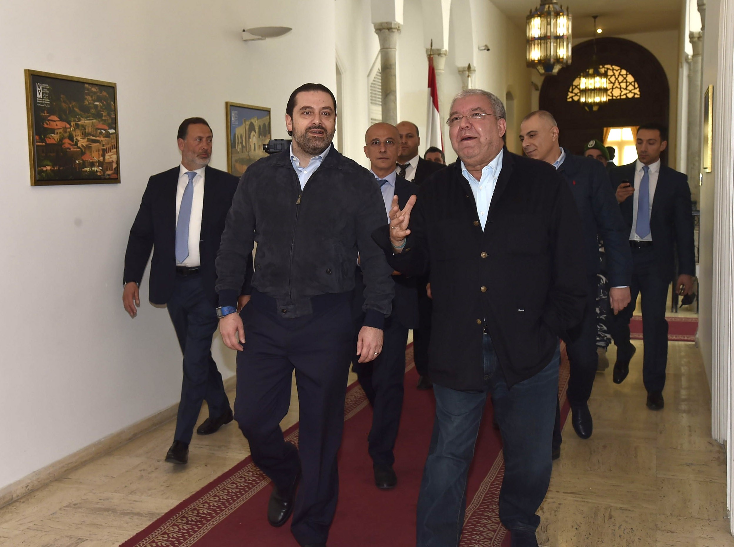 وختم الرئيس الحريري جولته بزيارة مقر وزارة الدفاع باليرزة حيث كان في استقباله وزير الدفاع يعقوب الصراف وقائد الجيش العماد جوزيف عون وعقد معهما اجتماعا تم خلاله استعراض الخطط والتدابير الأمنية التي تنفذها الوزارة لتفادي وقوع أي أحداث أمنية خلال فترة الأعياد.