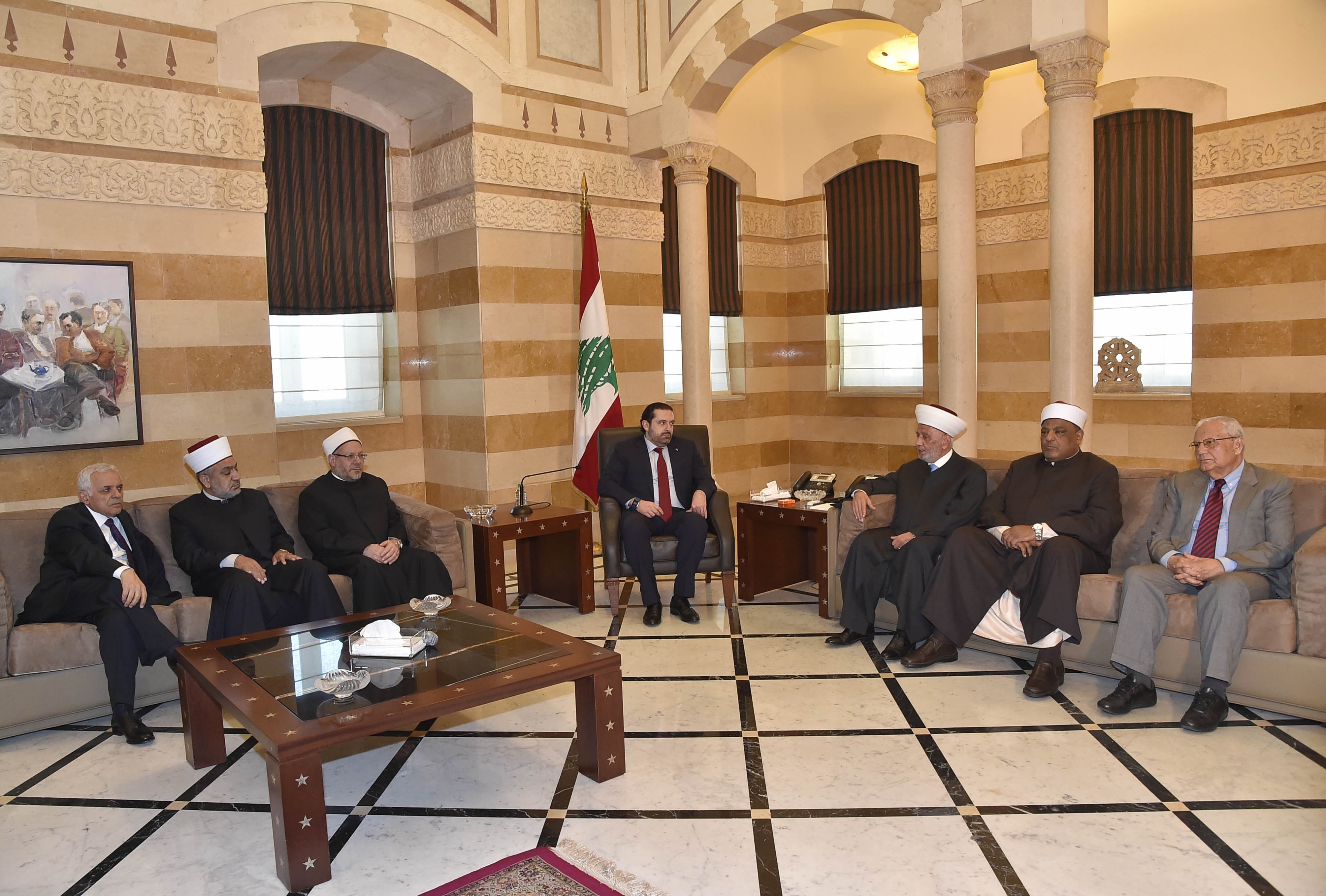 وكان الرئيس الحريري قد استقبل وفدا من المشاركين في المؤتمر الذي نظمته دار الفتوى اللبنانية بالتعاون مع مؤسسة "بيرغهوف" حول "دور المؤسسات الدينية الرسمية في تعزيز عملية السلام والحوار"، ضم مفتي الجمهورية الشخ عبد اللطيف دريان، مفتي مصر الدكتور الشيخ شوقي علّام، مفتي الأردن الدكتور الشيخ محمد الخلايلة، وكيل الأزهر الدكتور الشيخ عباس شومان وعدد من علماء الدين، في حضور الدكتور رضوان السيد والدكتور محمد السماك.