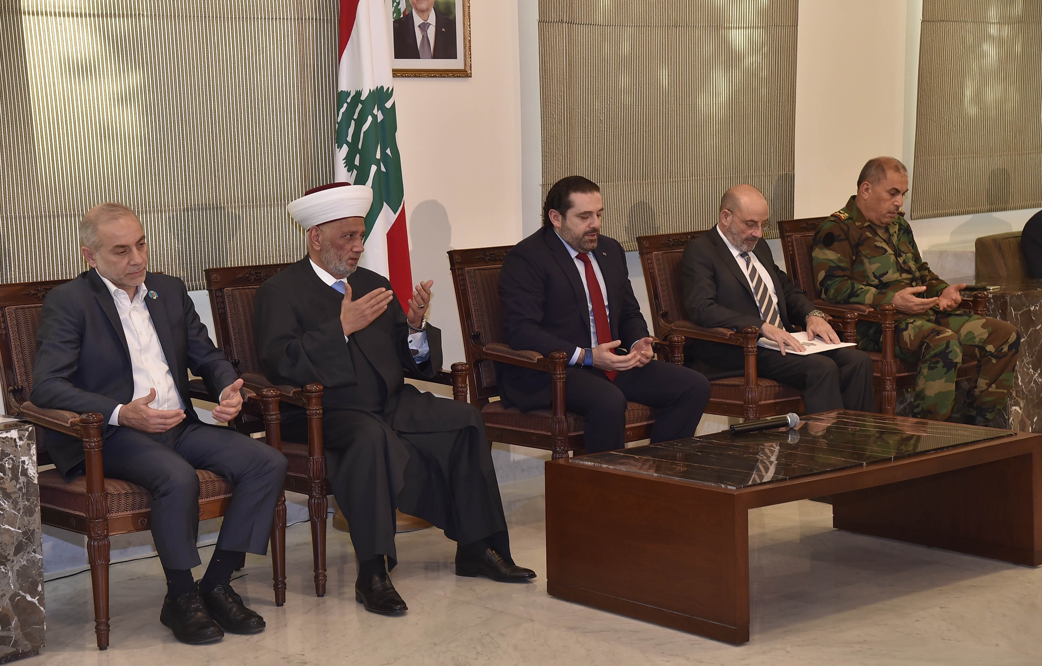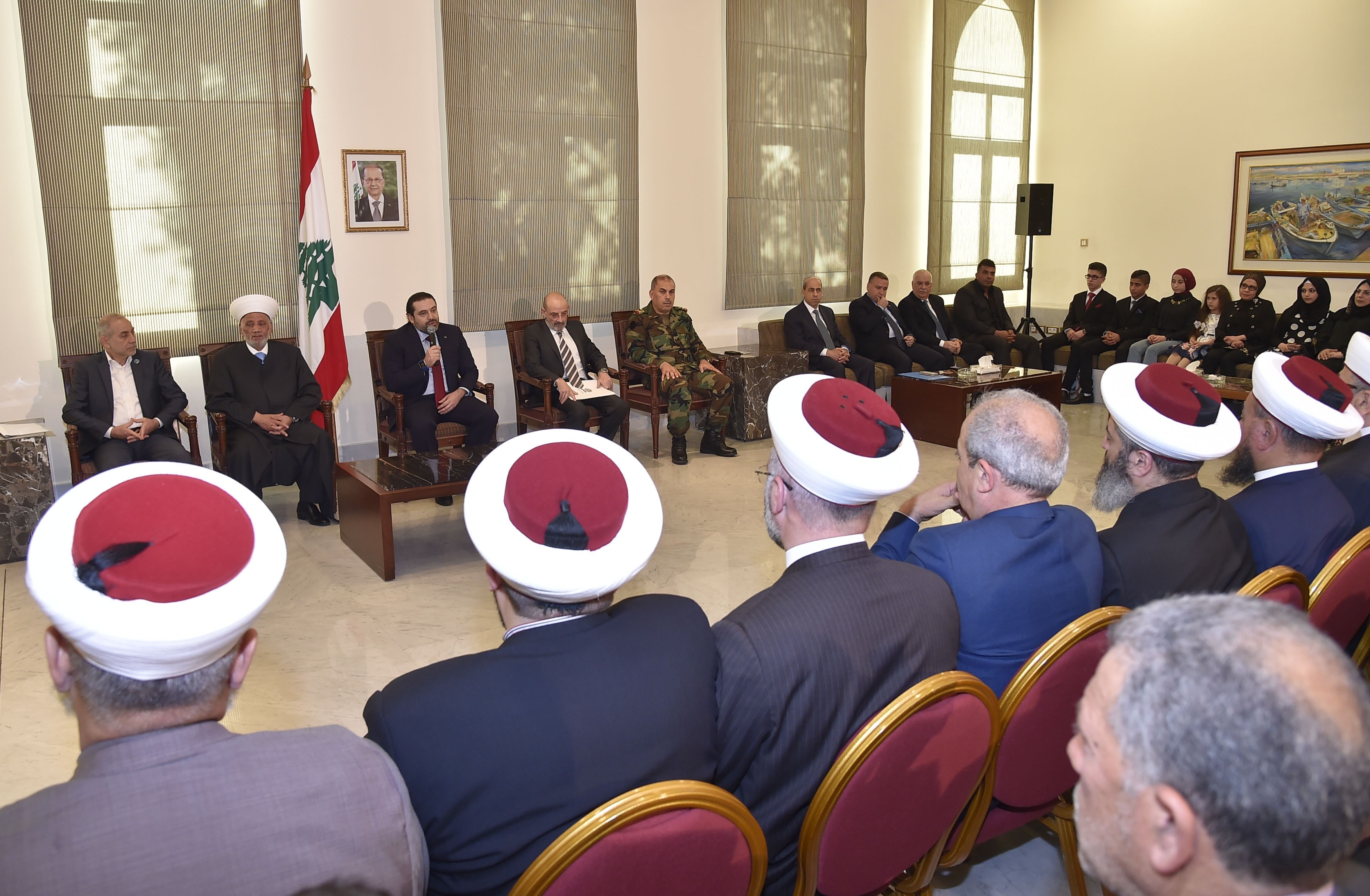 من جهته قال الوزير الصراف: "لا أستطيع إلا أن أشكر الرئيس الحريري على أمرين، الأول أنك ابن شهيد، تخاطب وتجمع أولا شهداء وتقول لهم جرحي جرحُكم وألمي ألمكم، فهذه بادرة عظيمة وتستحق كل احترام وتقدير. ثانيا أقول، وبصفتي ابن عكار، وأخ للأخوة المشايخ، أن تستضيف يا دولة الرئيس عائلتنا العكارية أمر كبير جدا. هذه المناسبة ليست مصالحة كما سبق أن ذُكر، فلم ولن يكون هناك أي خلاف بين مؤسسة الجيش وأي مواطن لبناني، لا بل على العكس، هذه المؤسسة لا تحيا ولن تحيا بدون أدعيتكم وصلواتكم، وبدون دعمكم السياسي يا دولة الرئيس، وبدون ظل عمامتك يا سماحة المفتي".