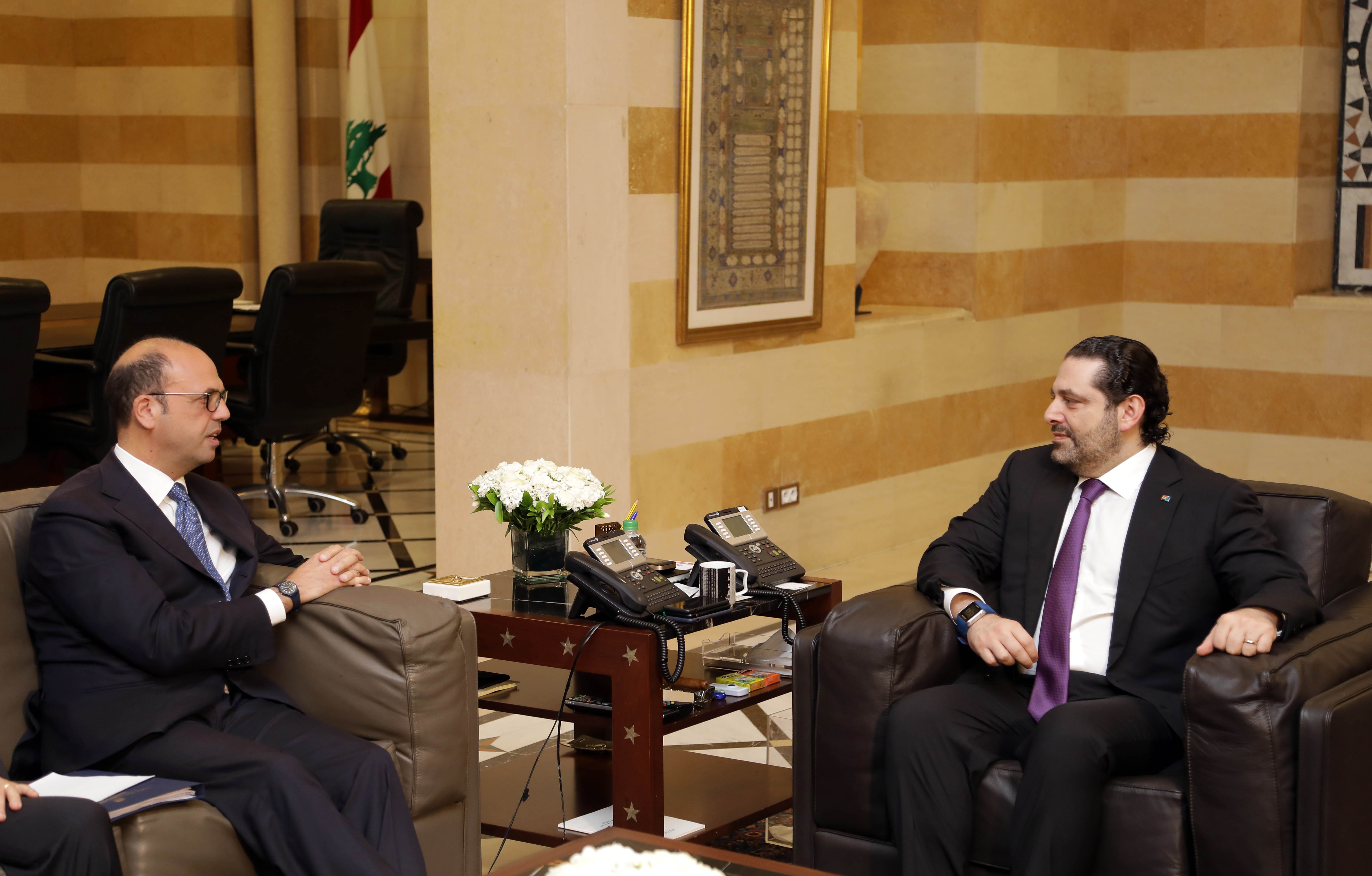 ولاحقا استقبل الرئيس الحريري في السراي الحكومي وزير الخارجية والتعاون الدولي الايطالي Angelino Alfano والوفد المرافق وعرض معه الاوضاع في لبنان والمنطقة والعلاقات الثنائية بين لبنان وايطاليا.
