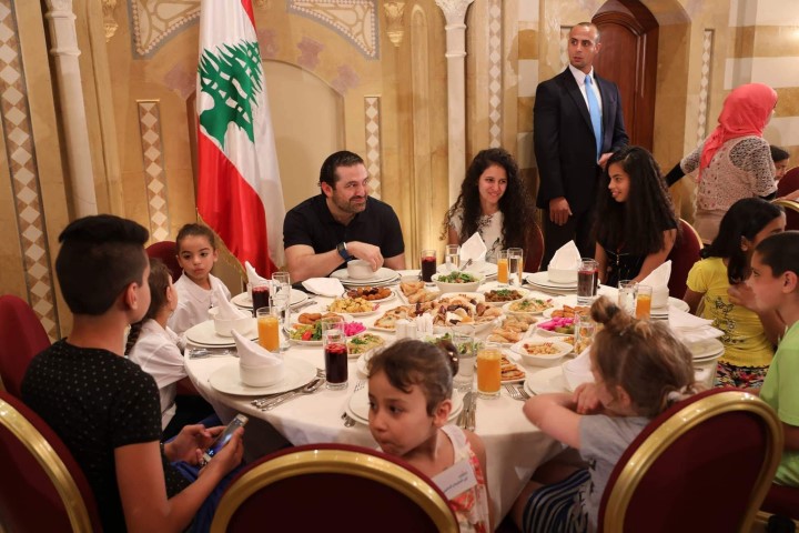 استهل رئيس مجلس الوزراء سعد الحريري افطاراته الرمضانية لهذا العام بافطار اقامه في بيت الوسط على شرف حوالي 160 طفل من كل من دار الايتام الاسلامية ومؤسسات الدكتور محمد خالد الاجتماعية وايتام صندوق الزكاة.