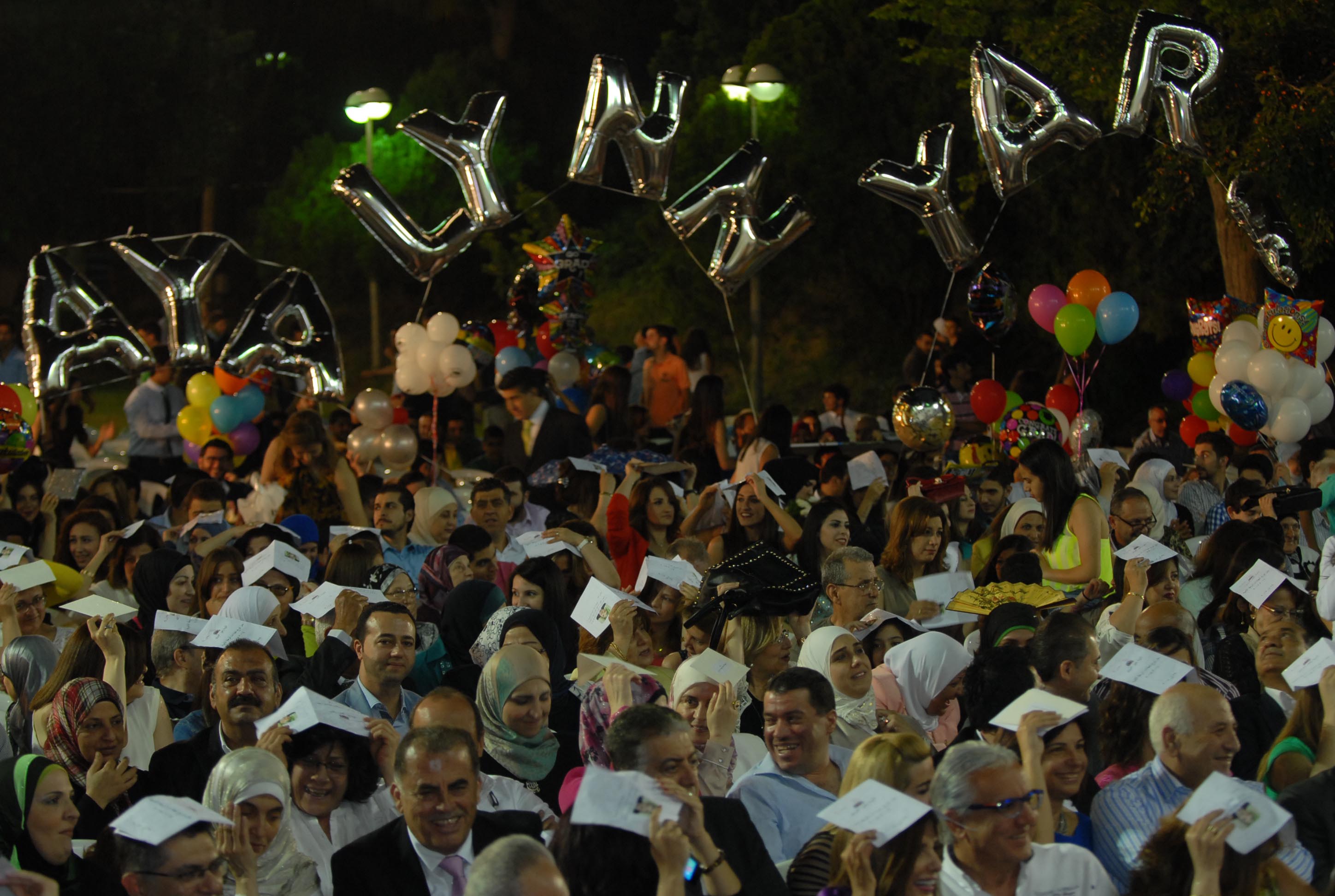 وحل المطر الذي فاجأ الحضور فقرة طارئة على برنامج الاحتفال الذي استكمل بشكل طبيعي بعد توقف الأمطار من دون ان تفسد على الخريجين والأهالي فرحتهم .