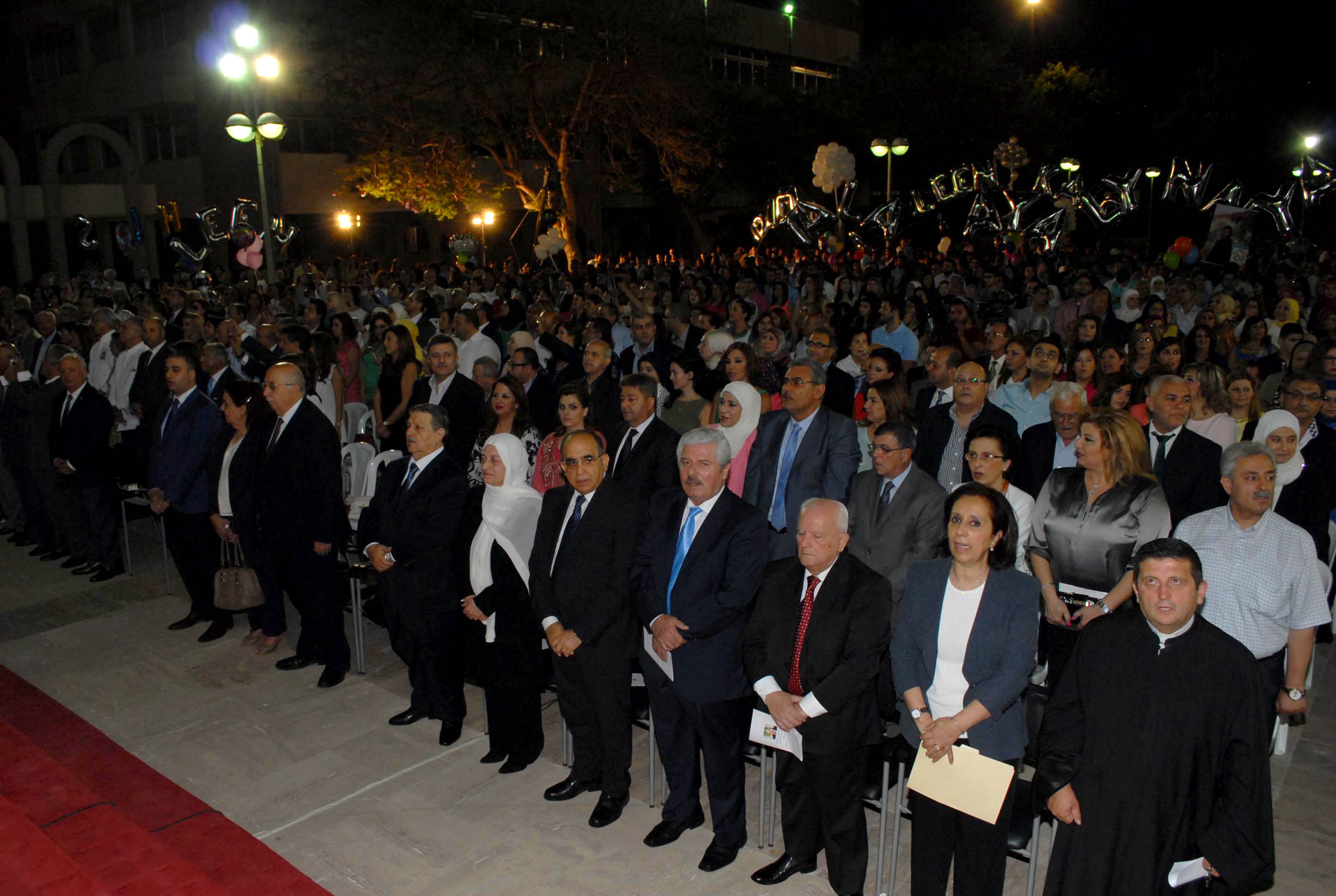 تقدم حضور الاحتفال الى جانب ممثل الرئيس الحريري الدكتور منيمنة: ممثلة الرئيس فؤاد السنيورة نادين ترياقي، ممثل المطران ايلي حداد الأب سليمان وهبي ، ممثلة رئيس بلدية صيدا المهندس محمد السعودي عضو المجلس البلدي عرب كلش، ممثل امين عام تيار المستقبل احمد الحريري منسق عام التيار في الجنوب الدكتور ناصر حمود، الأب مارون صيقلي، السيدان شفيق ومصطفى الحريري ، الدكتور علي الشيخ عمار، رئيس غرفة التجارة والصناعة والزراعة في صيدا والجنوب محمد حسن صالح ونائبه عمر دندشلي ، رئيس جمعية تجار صيدا وضواحيها علي الشريف ونائبه محمد القطب ، رئيسة دائرة الامتحانات في لبنان جمال بغدادي ، امين عام نقابة المعلمين وليد جرادي، رئيسة دائرة التربية في الجنوب سمية حنينة، مديرة المركز الفرنسي ليتيسيا بارب،مدير كلية الصحة في الجامعة اللبنانية الدكتور محمد البزري، مدير المعهد الجامعي للتكنولوجيا في الجامعة اللبنانية الدكتور محمد الحجار، رئيس لجنة ادارة مستشفى صيدا الحكومي الدكتور هشام قدورة، الرئيسان السابقان لبلدية صيدا المهندس احمد كلش والمهندس هلال قبرصلي وعدد من مدراء المدارس وفاعليات تربوية واهلية واهالي الخريجين . وكان في استقبالهم مدير مؤسسة الحريري في صيدا الحاج محيي الدين القطب ومديرة الثانوية رندة درزي الزين ورئيس لجنة ألأهل مازن حشيشو .