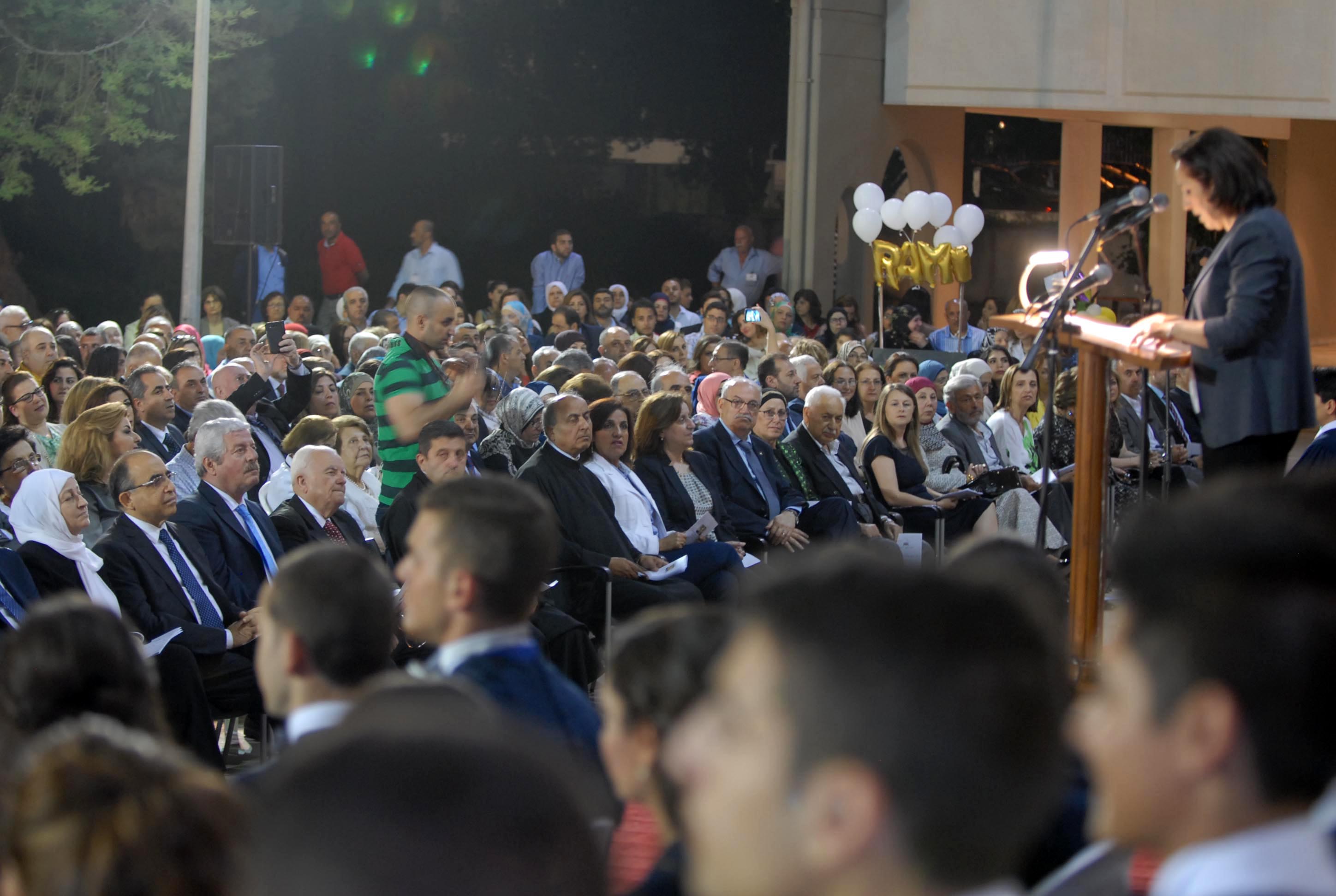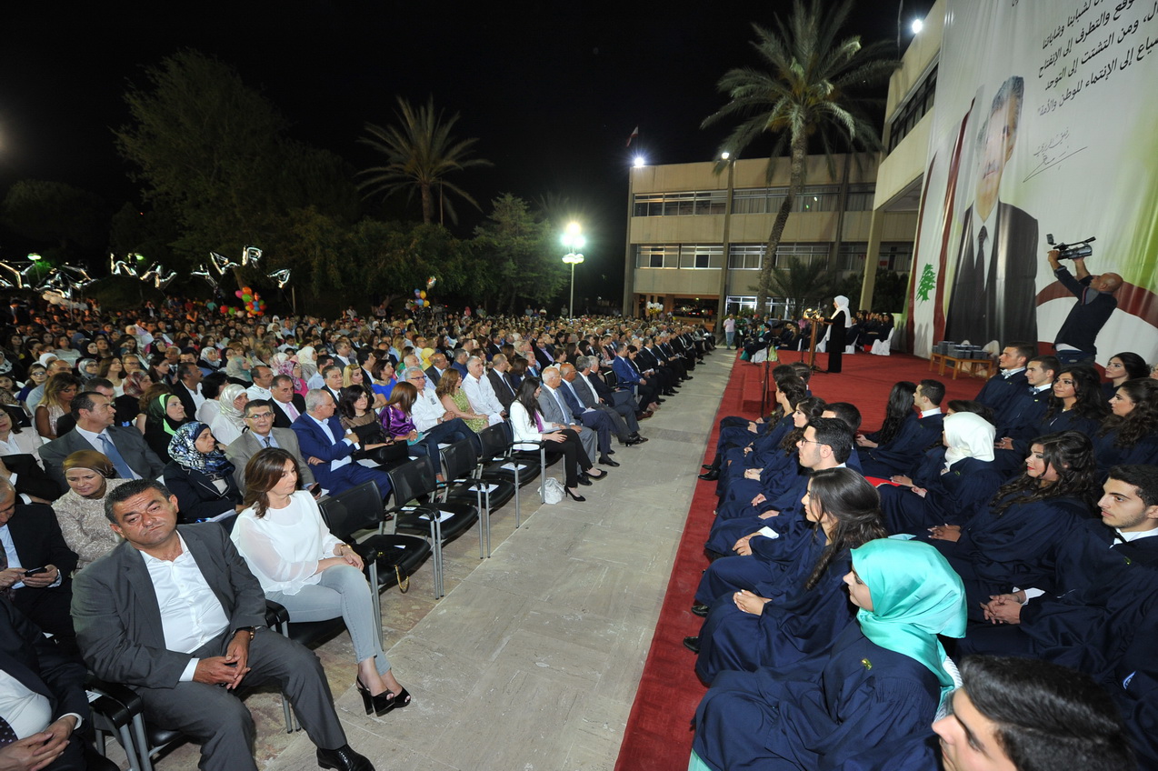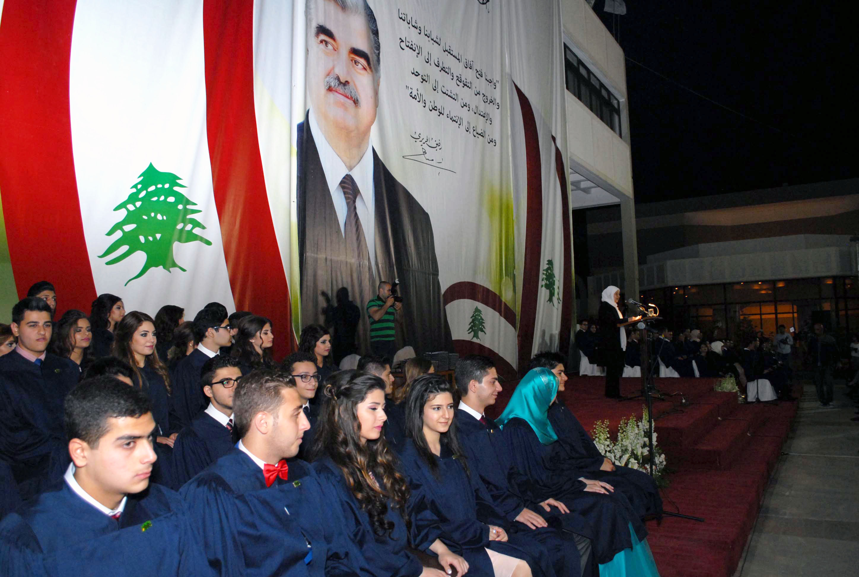 الحفل الذي حضره ممثل الرئيس سعد الحريري عضو المكتب السياسي لتيار المستقبل الدكتور حسن منيمنة تميز بتهنئة خاصة للطلاب من السيدة نازك رفيق الحريري نقلتها اليهم مديرة الثانوية رندة درزي الزين التي مثلتها في الاحتفال. فيما استهلت النائب الحريري كلمتها في الحفل بنقل تحيات وتهنئة الشيخ بهاء الدين الحريري الى الخريجين، واكدت اننا على خطى الرئيس الشّهيد رفيق الحريري وفي مدرسته لا نجد سبيلاً للخروج من واقعنا المرير إلاّ بالتّعليم والعمل..ولم تخف الحريري القلق على وطننا واستقرارنا من إرتدادات النّزاعات التي تحيط بنا..وقالت: نجدّد قلقنا من عدم إنتخاب رئيس للبلاد يعيد الإنتظام العام وعمل المؤسسات ولا نجد سبباً لعدم إتمام هذه العملية الوطنية وقد أتممنا قبل أيام عاماً كاملاً من الشغور الرئاسي في البلاد ..