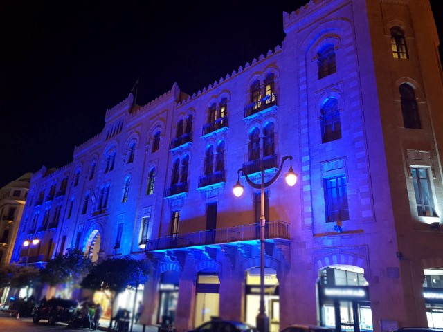 القصر البلدي لمدينة بيروت باللون الأزرق