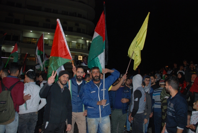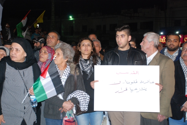 بدعوة من لقاء الأحزاب اللبنانية في الجنوب، أقيم مساء يوم السبت اعتصام جماهيري حاشد في ساحة النجمة في صيدا نصرة للقدس وتضامناً مع كفاح الشعب الفلسطيني في وجه العدوان الامريكي الصهيوني الهادف الى تهويد القدس وتصفية القضية الفلسطينية.